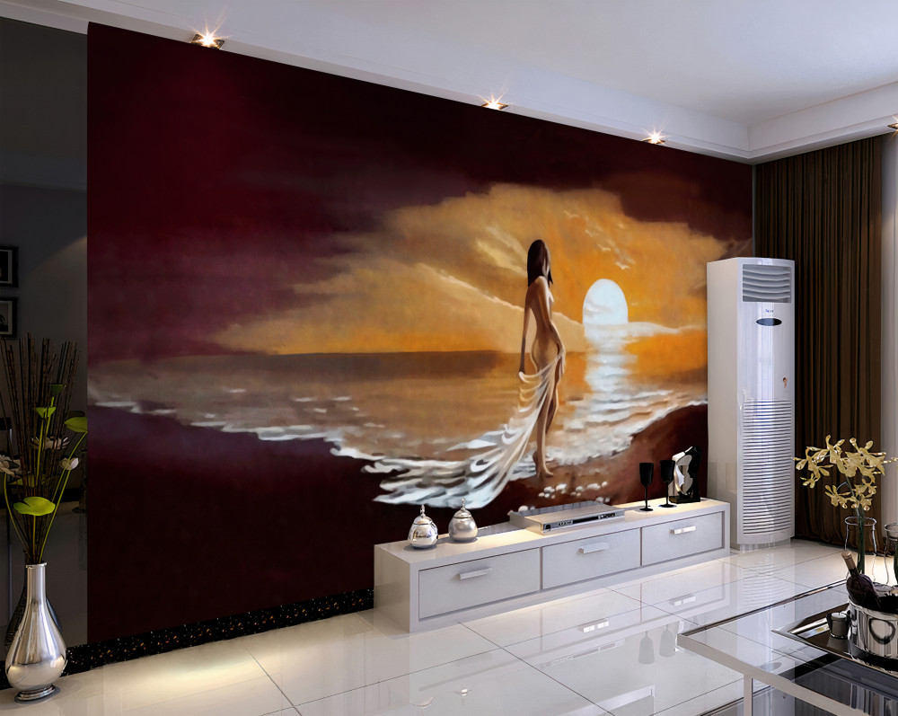 Tapeta Fototapeta dziewczyna ogląda zachód słońca nad morzem (artykuł a92321 ) z kategorii Fototapety Akwarele