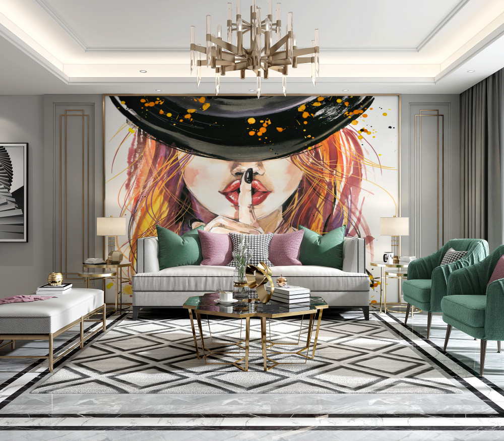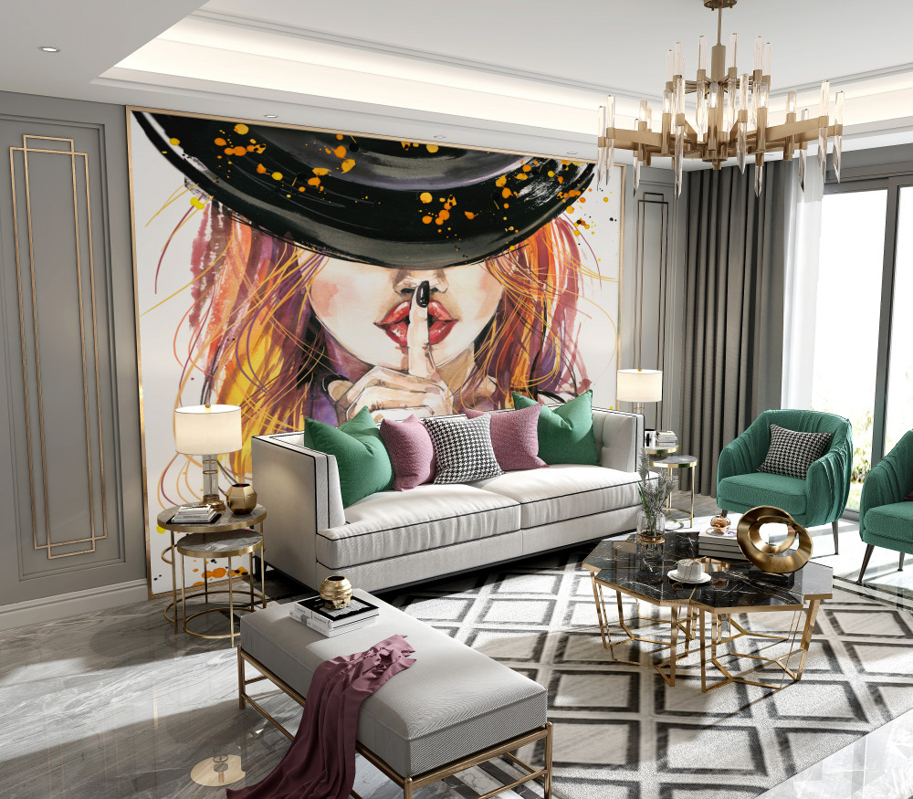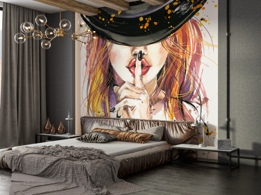 Tapeta Fototapeta dziewczyna w czarnym kapeluszu (artykuł a89768 ) z kategorii Fototapety Akwarele