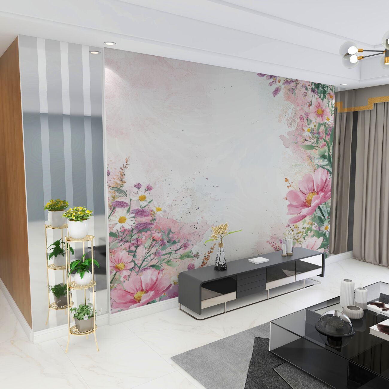 Tapeta Fototapeta Jasne stokrotki i różowe maki (artykuł a99598 ) z kategorii Fototapety Akwarele
