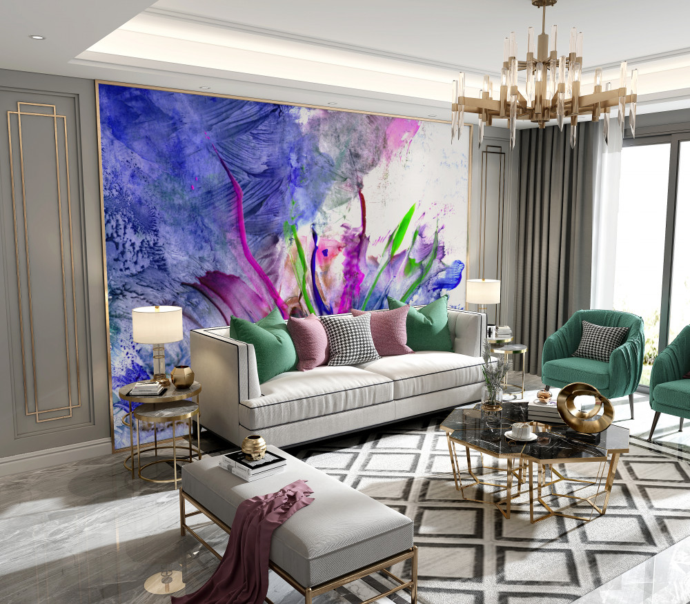 Tapeta Fototapeta kwiaty o abstrakcyjnych jasnych kolorach (artykuł a89771 ) z kategorii Fototapety Akwarele