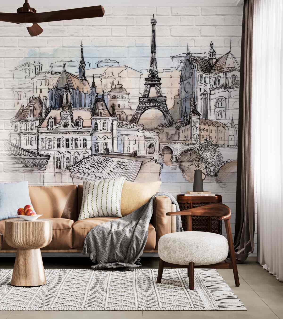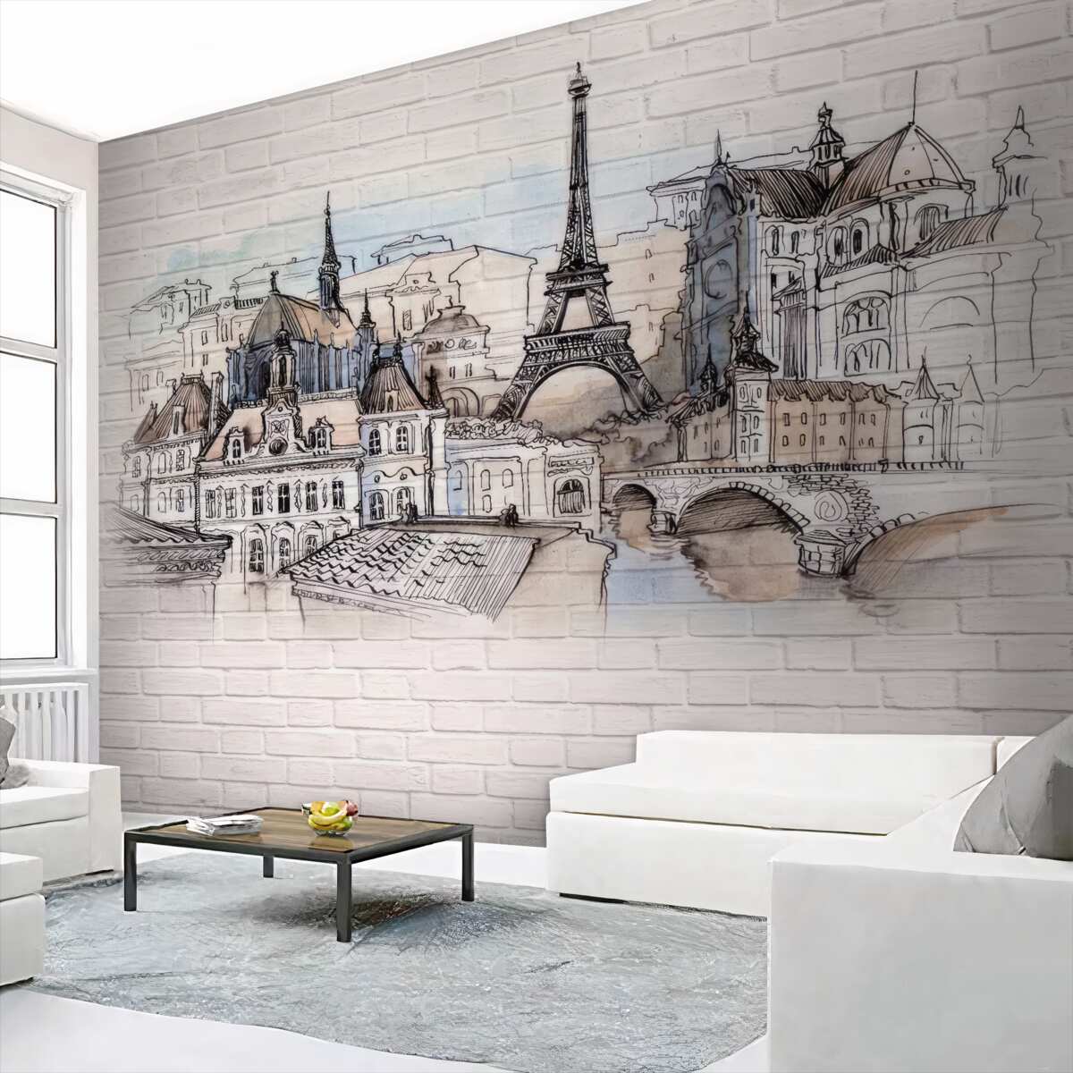 Tapeta Fototapeta Paryż namalowany na ceglanym murze (artykuł a97792 ) z kategorii Fototapety Akwarele