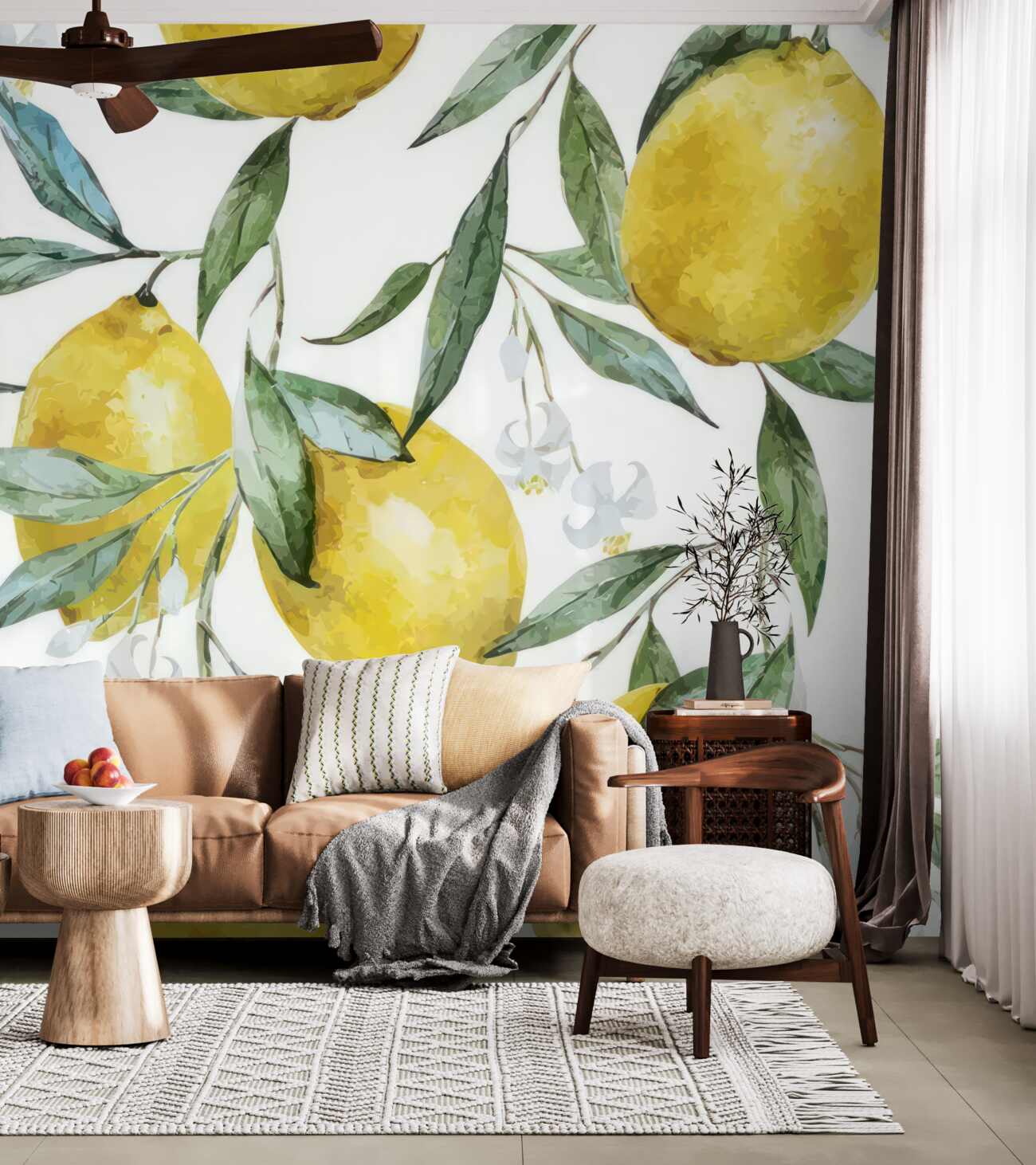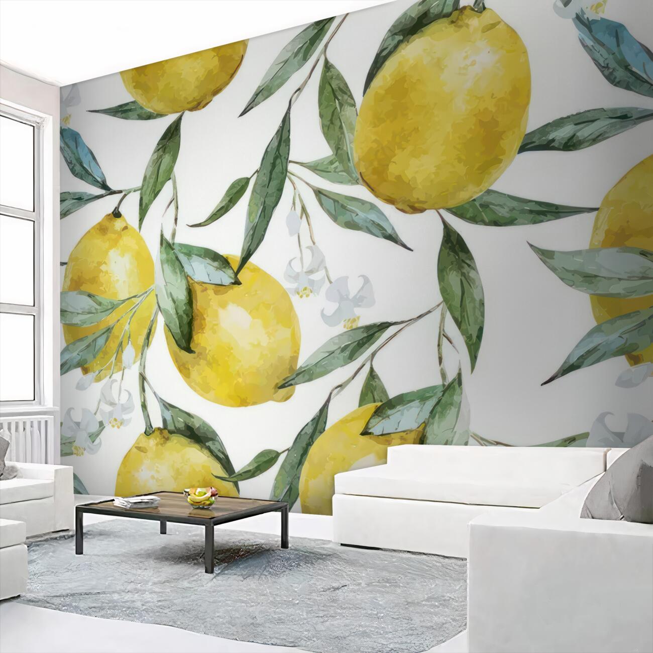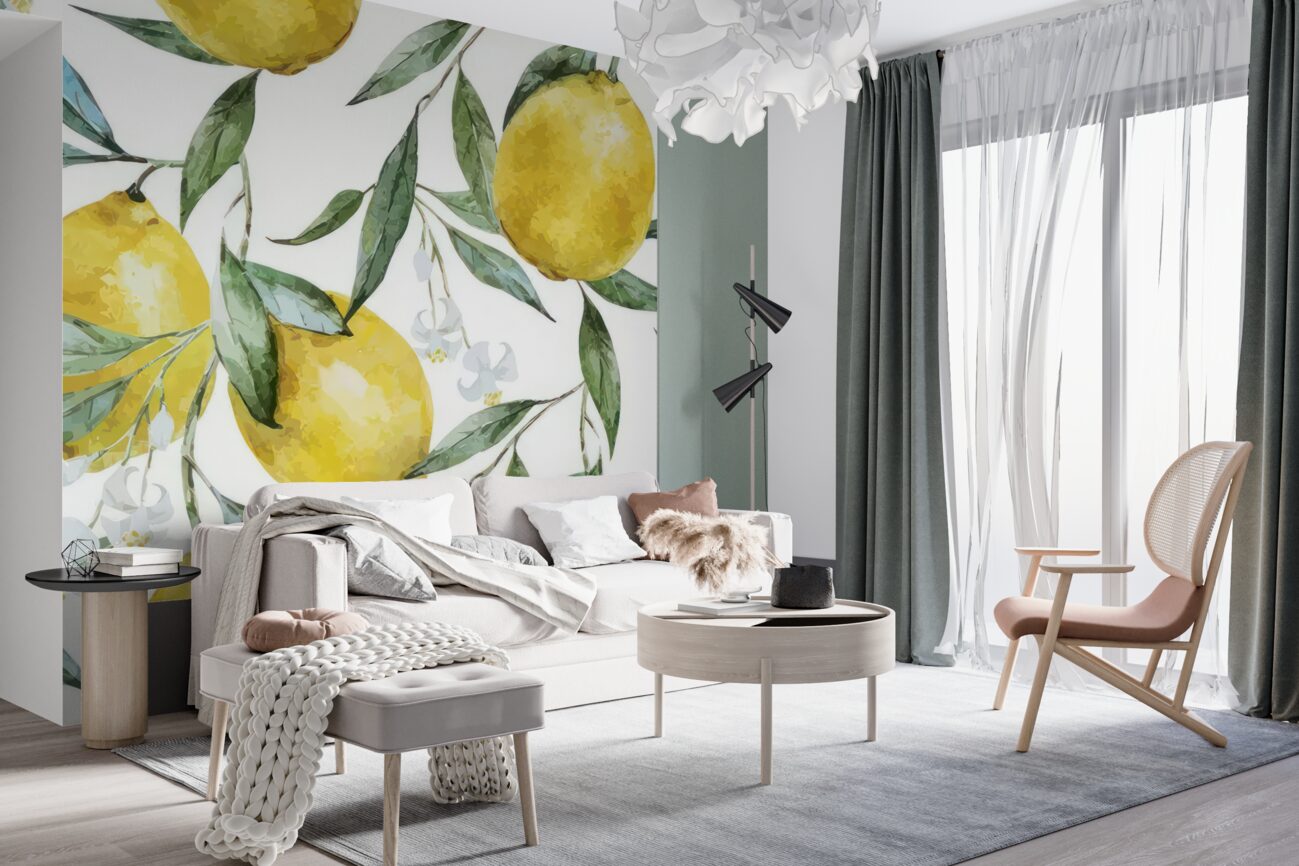 Tapeta Fototapeta Soczyste cytryny na gałęziach (artykuł a99463 ) z kategorii Fototapety Akwarele