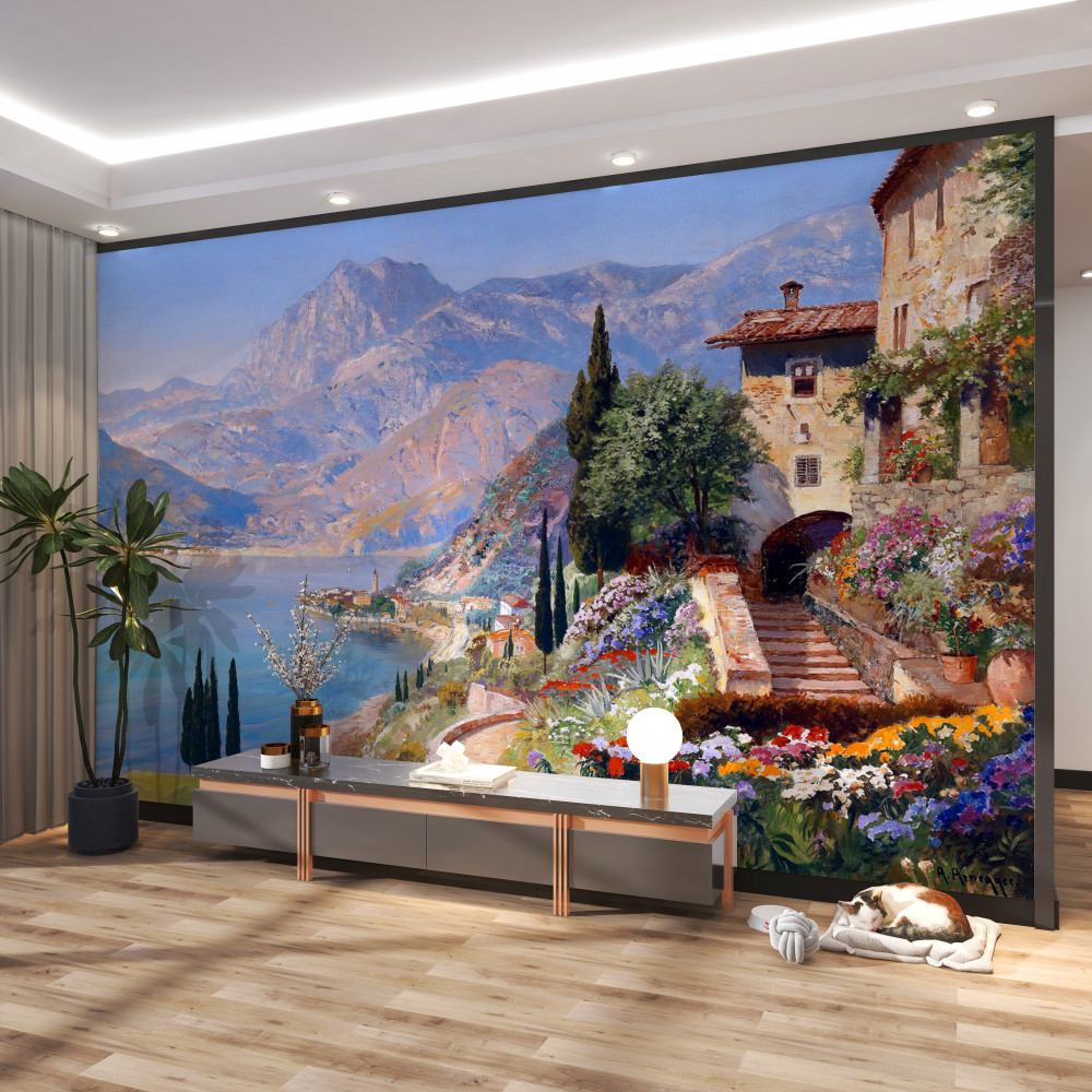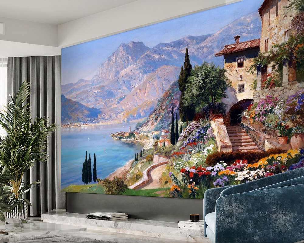Tapeta Fototapeta Śródziemnomorski krajobraz z kolorami (artykuł a92391 ) z kategorii Fototapety Akwarele