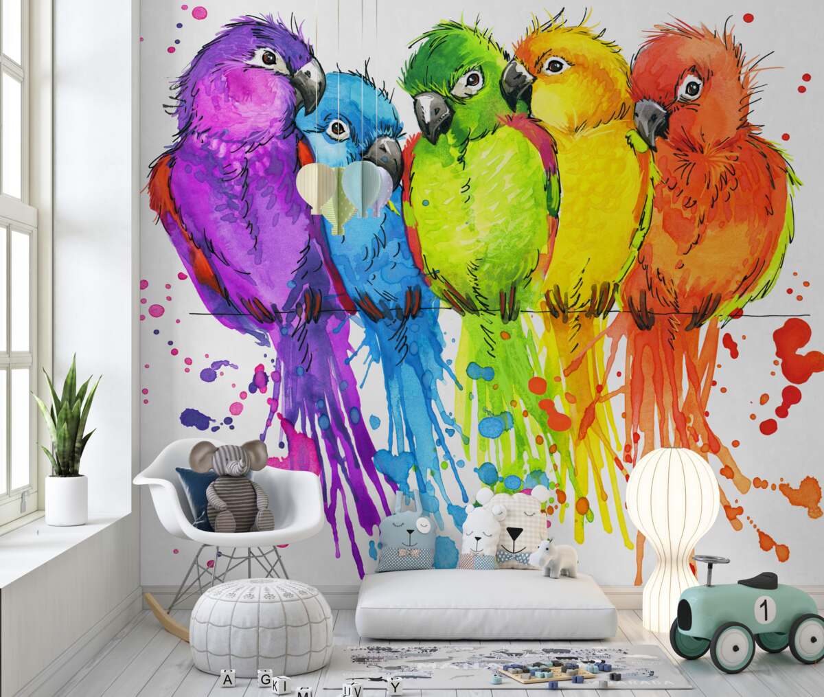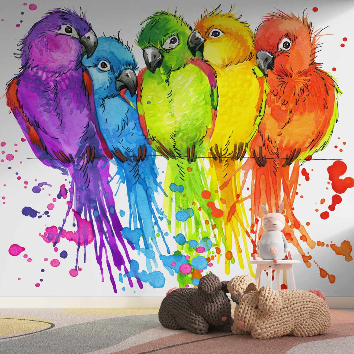 Tapeta Fototapeta Wielokolorowe papugi (artykuł a96721 ) z kategorii Fototapety Akwarele