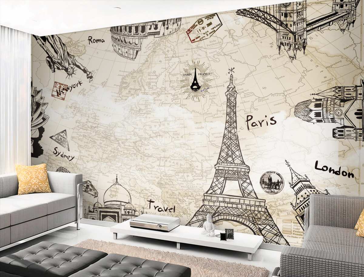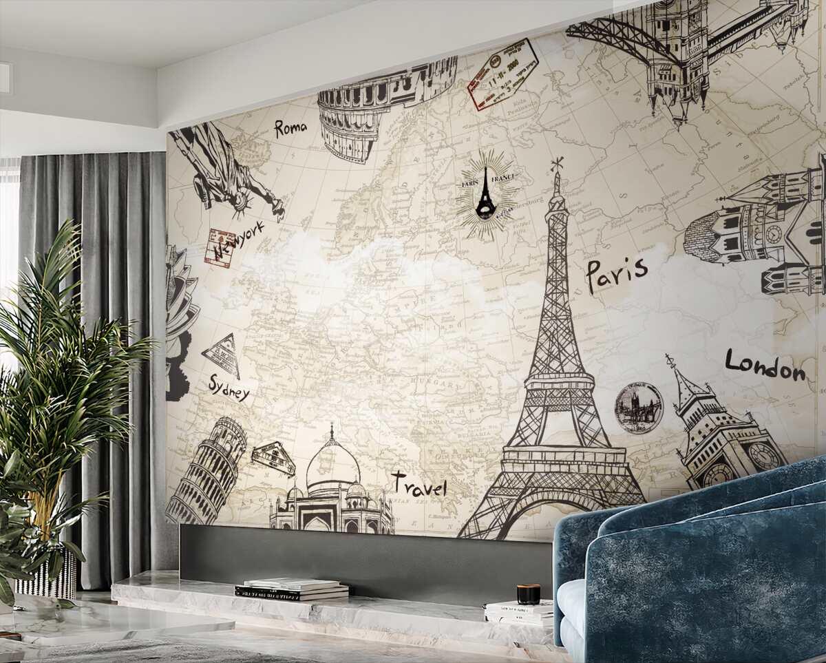 Tapeta Fototapeta Architektura Europy na mapie (artykuł a98297 ) z kategorii Fototapety Architektura