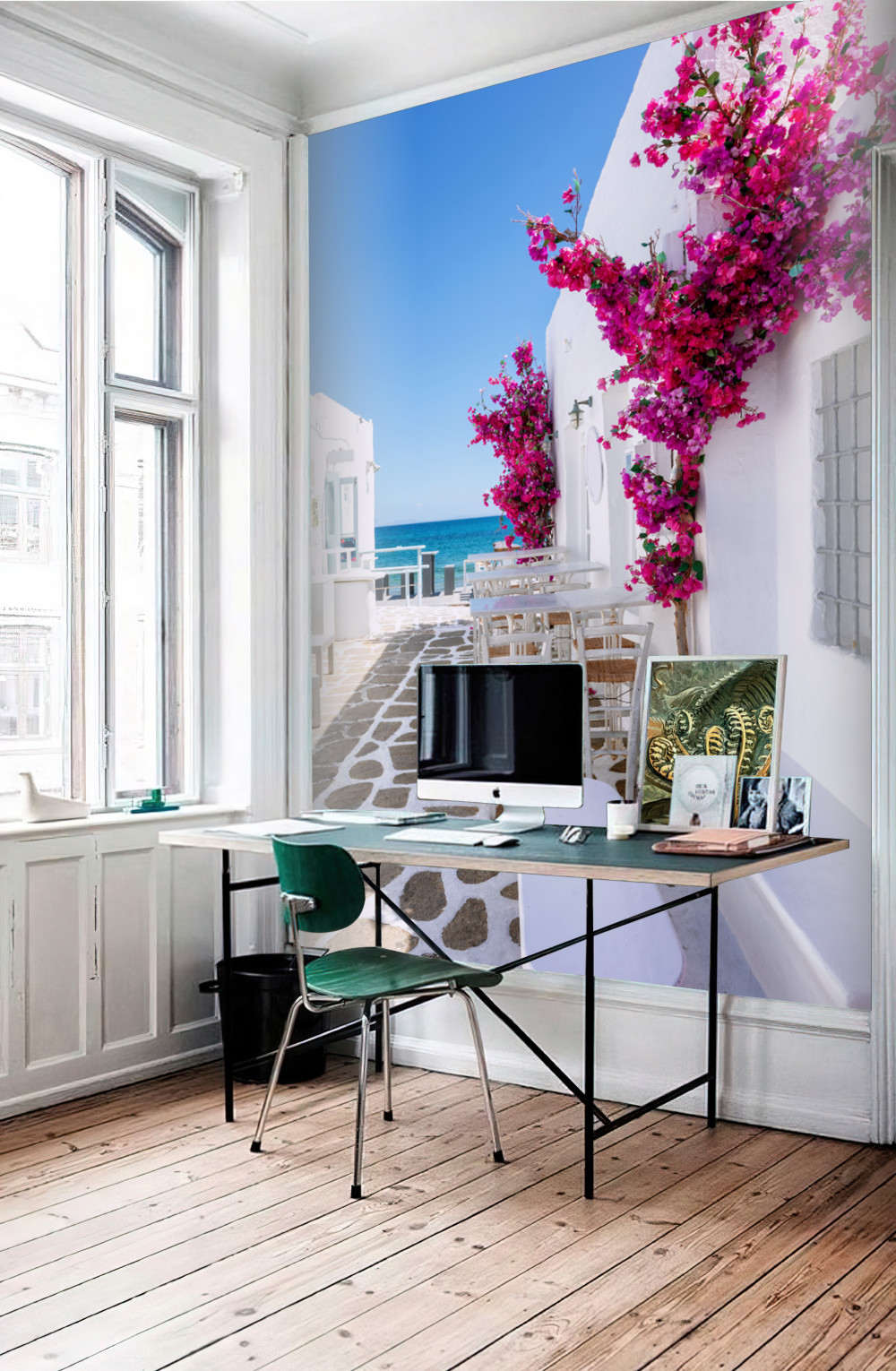 Tapeta Fototapeta biała ulica z dostępem do morza (artykuł a89742 ) z kategorii Fototapety Architektura