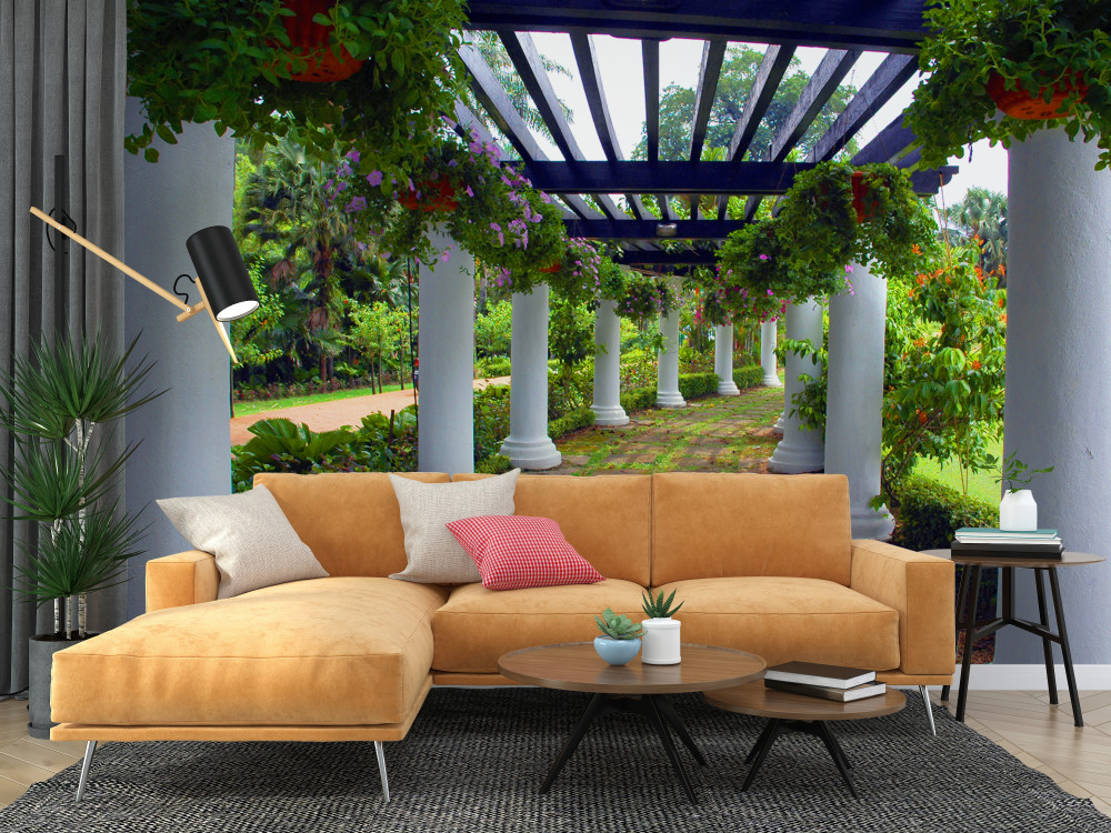 Tapeta Fototapeta białe betonowe kolumny w ogrodzie (artykuł a89641 ) z kategorii Fototapety Architektura