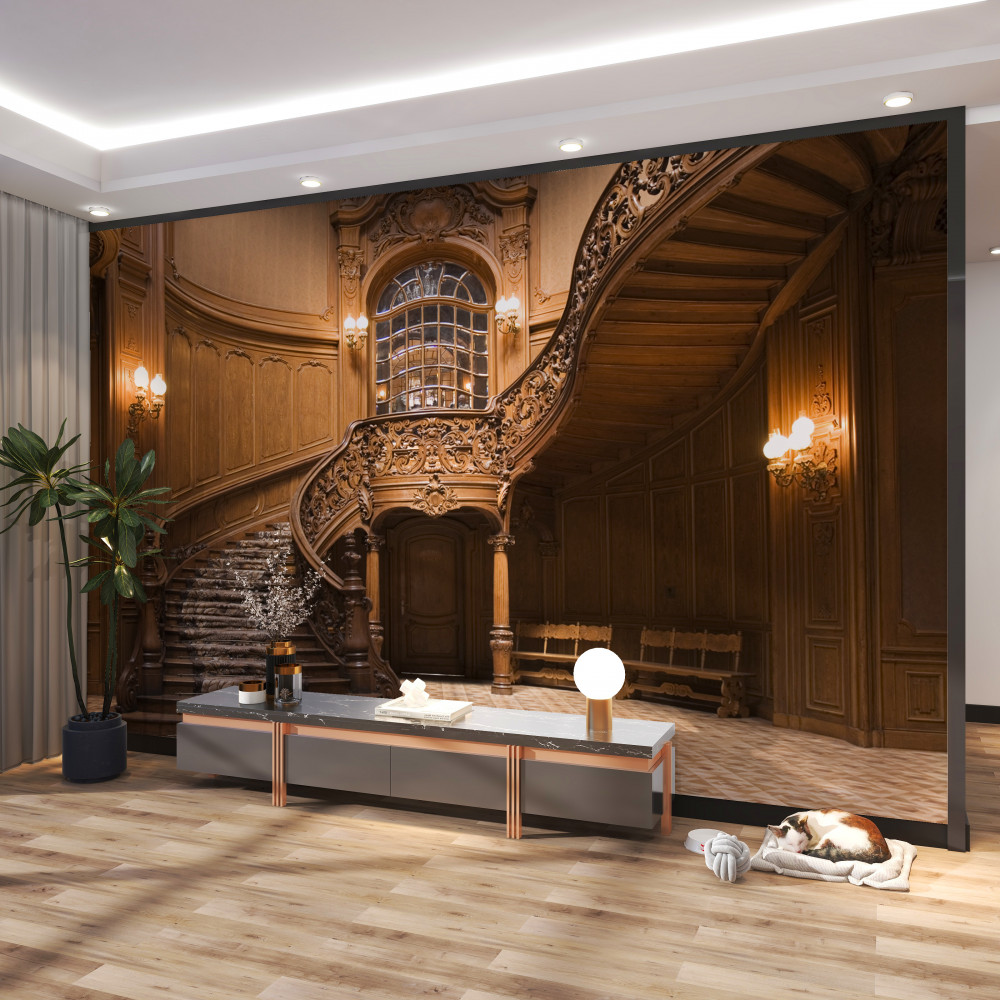 Tapeta Fototapeta drewniane schody domu naukowców (artykuł a89647 ) z kategorii Fototapety Architektura