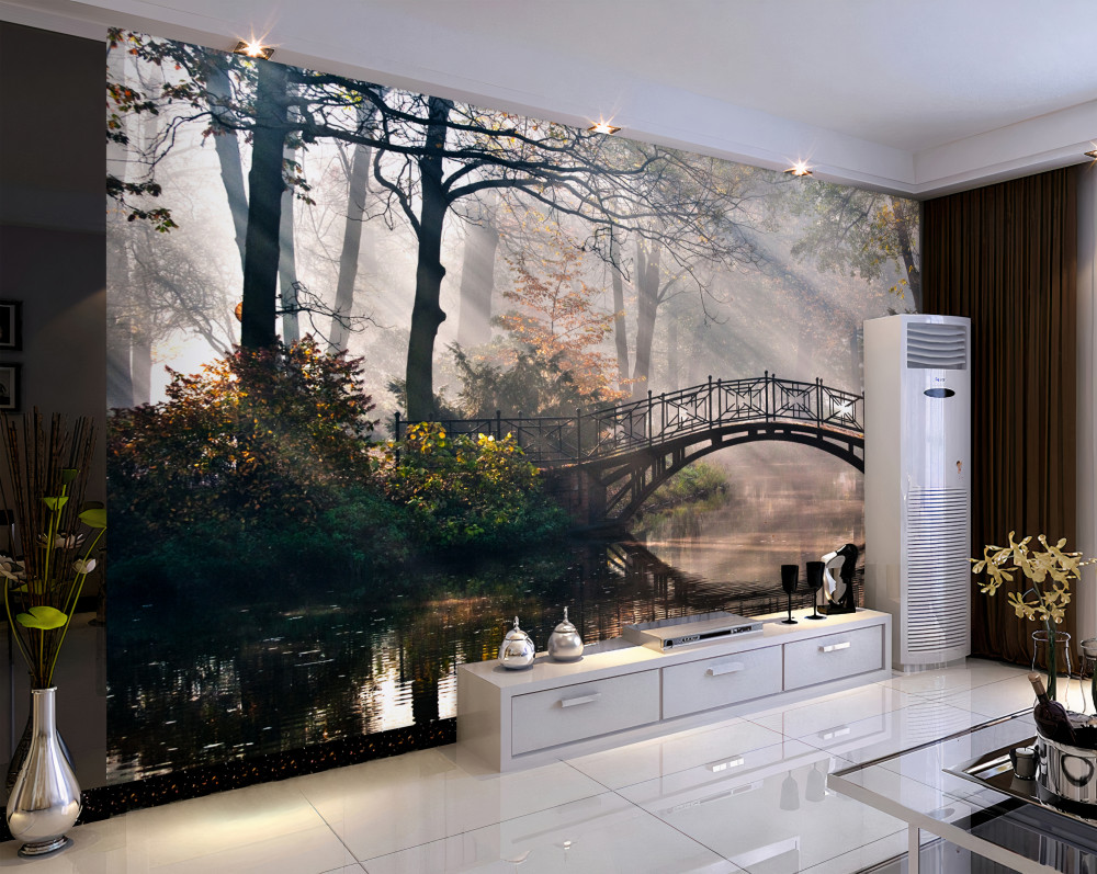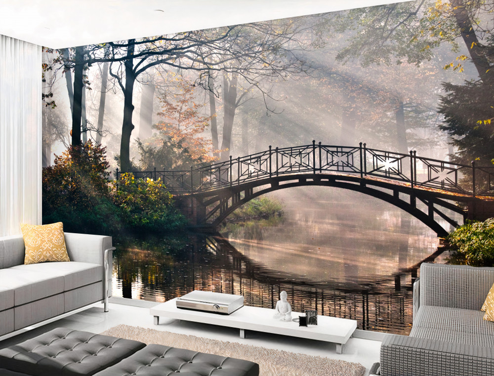 Tapeta Fototapeta most i jego odbicie w wodzie lasu (artykuł a92638 ) z kategorii Fototapety Architektura