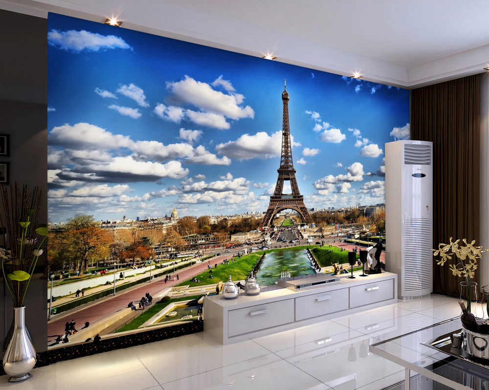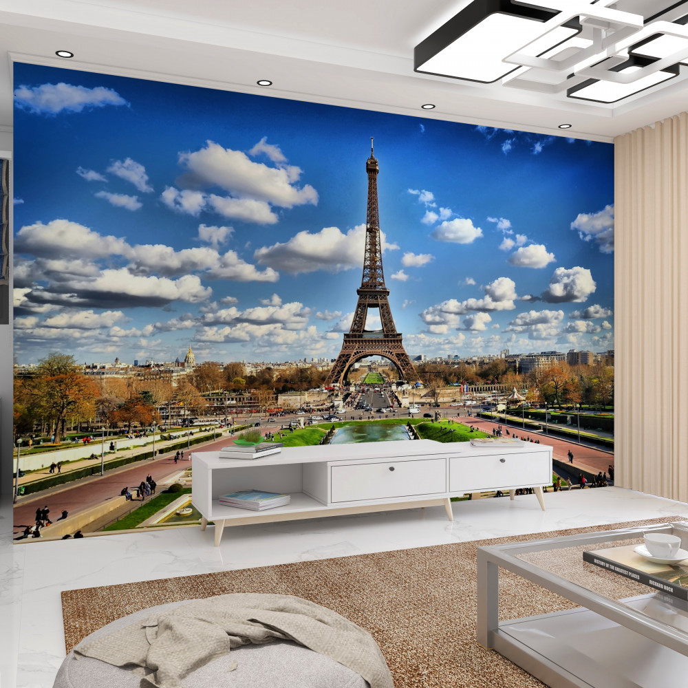 Tapeta Fototapeta panorama Wieży Eiffla z parku (artykuł a90657 ) z kategorii Fototapety Architektura