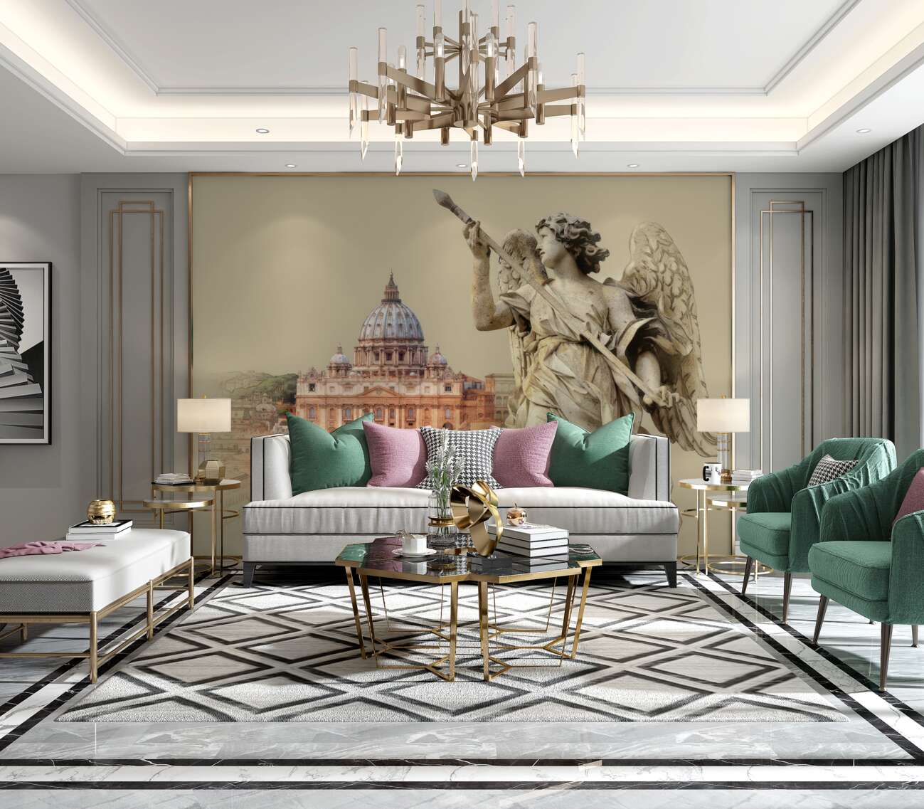 Tapeta Fototapeta Starożytny pałac i para architektury aniołów (artykuł a99206 ) z kategorii Fototapety Architektura