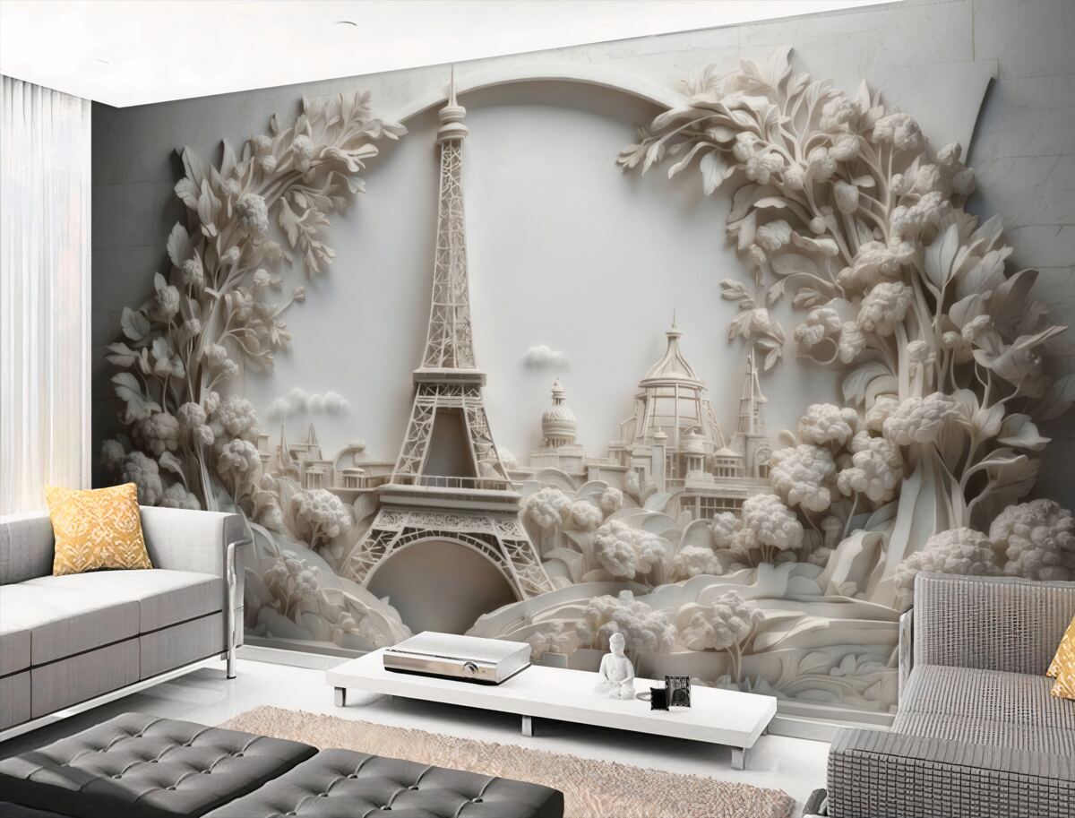 Tapeta Fototapeta Wieża Eiffla w roślinach (artykuł a97954 ) z kategorii Fototapety Architektura