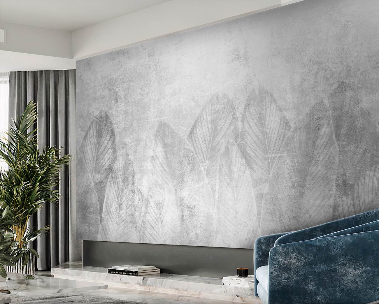 Tapeta Fototapeta Tropiki pozostawia we mgle (artykuł a99077 ) z kategorii Fototapety Czarno-biały i retro