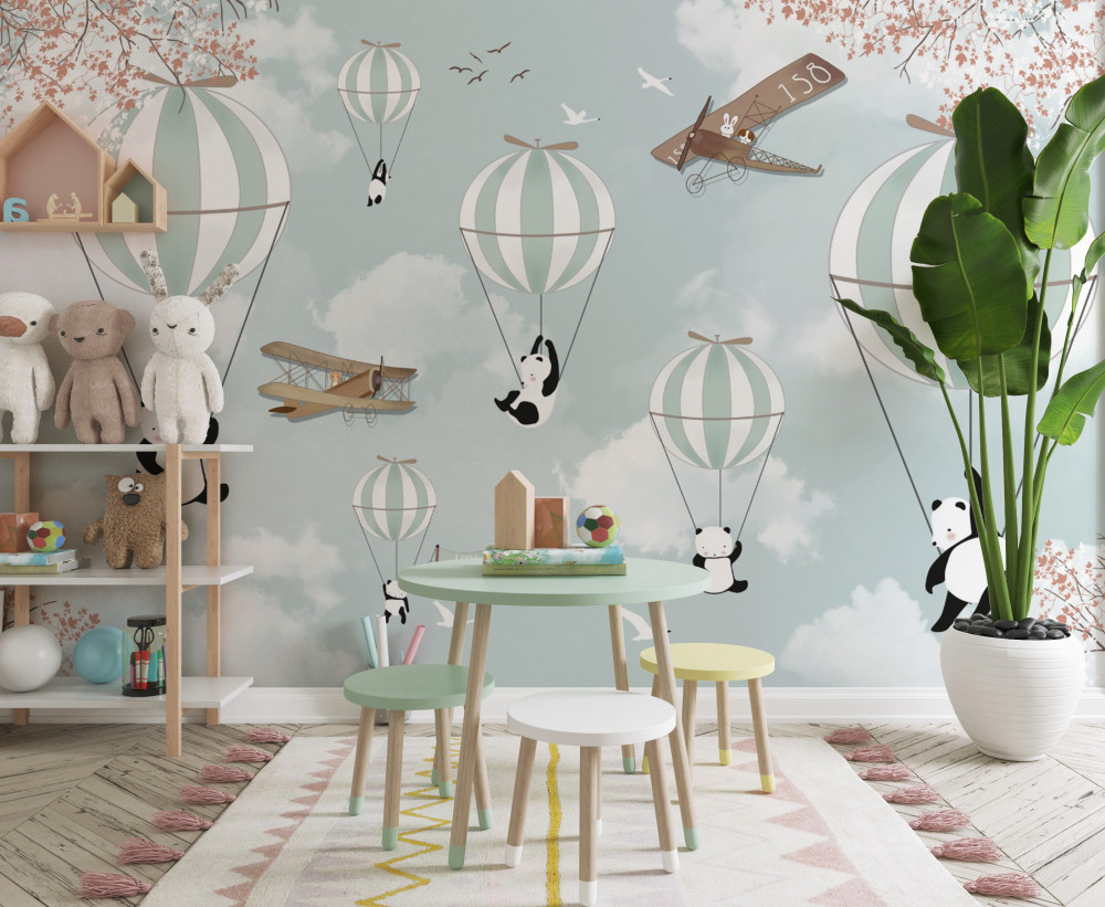 Tapeta Fototapeta balony i pandy (artykuł a89852 ) z kategorii Fototapety dla Chłopców
