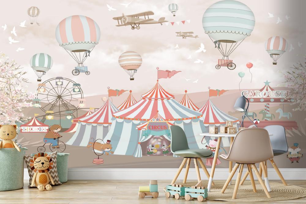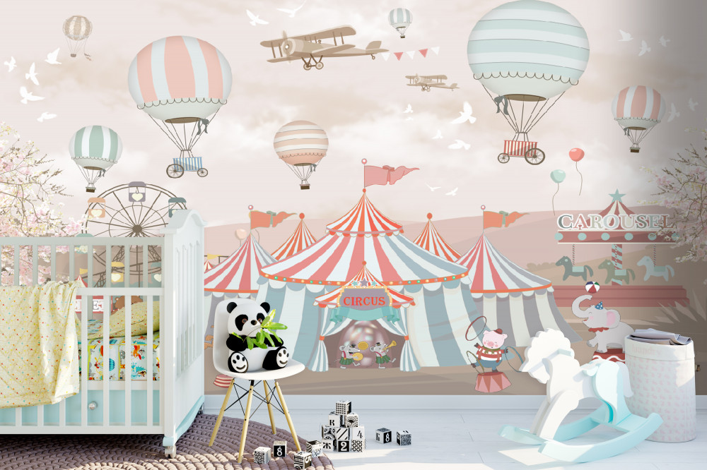 Tapeta Fototapeta balony na niebie i cyrku (artykuł a89891 ) z kategorii Fototapety dla Chłopców