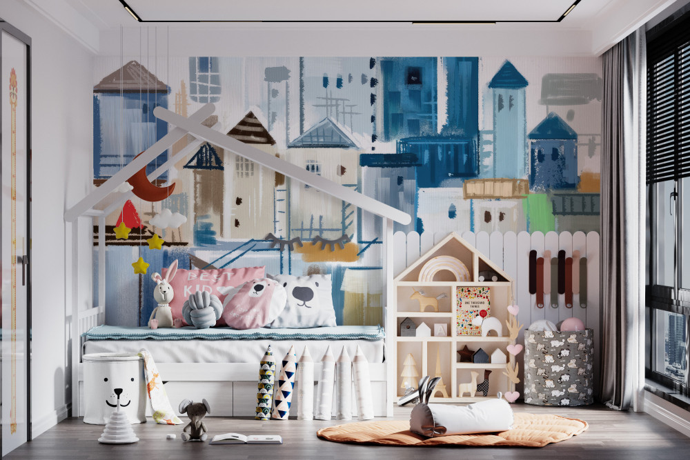Tapeta Fototapeta budynek miasta z kreskówek (artykuł a91756 ) z kategorii Fototapety dla Chłopców