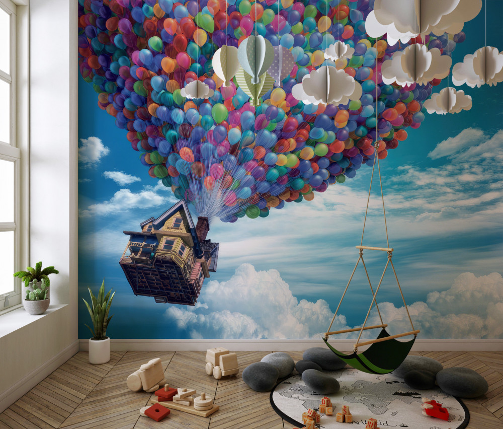 Tapeta Fototapeta dom z wieloma balonami (artykuł a90335 ) z kategorii Fototapety dla Chłopców