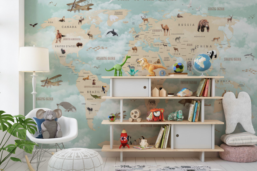 Tapeta Fototapeta fauna na mapie świata (artykuł a89952 ) z kategorii Fototapety dla Chłopców