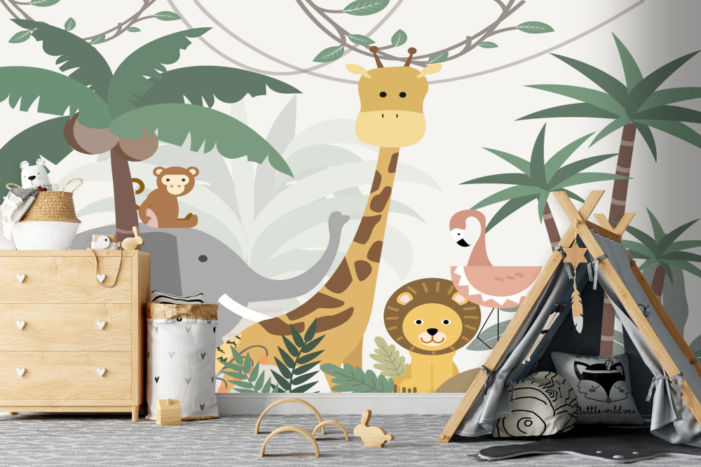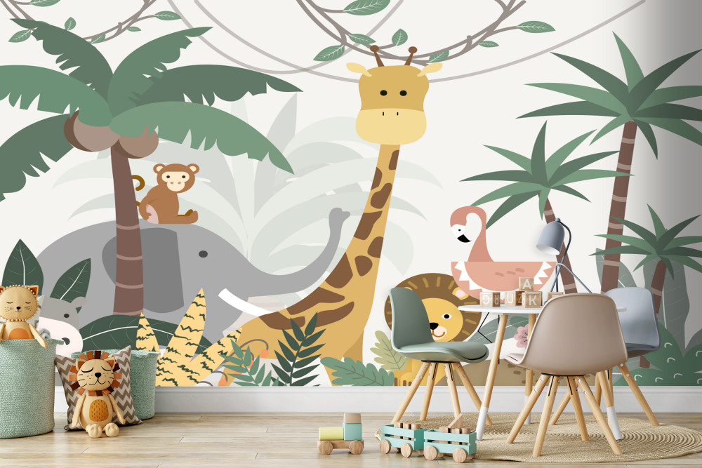 Tapeta Fototapeta grupa zwierząt dżungli (artykuł a90252 ) z kategorii Fototapety dla Chłopców