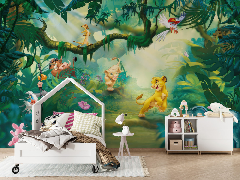 Tapeta Fototapeta król lew z przyjaciółmi w dżungli (artykuł a90233 ) z kategorii Fototapety dla Chłopców