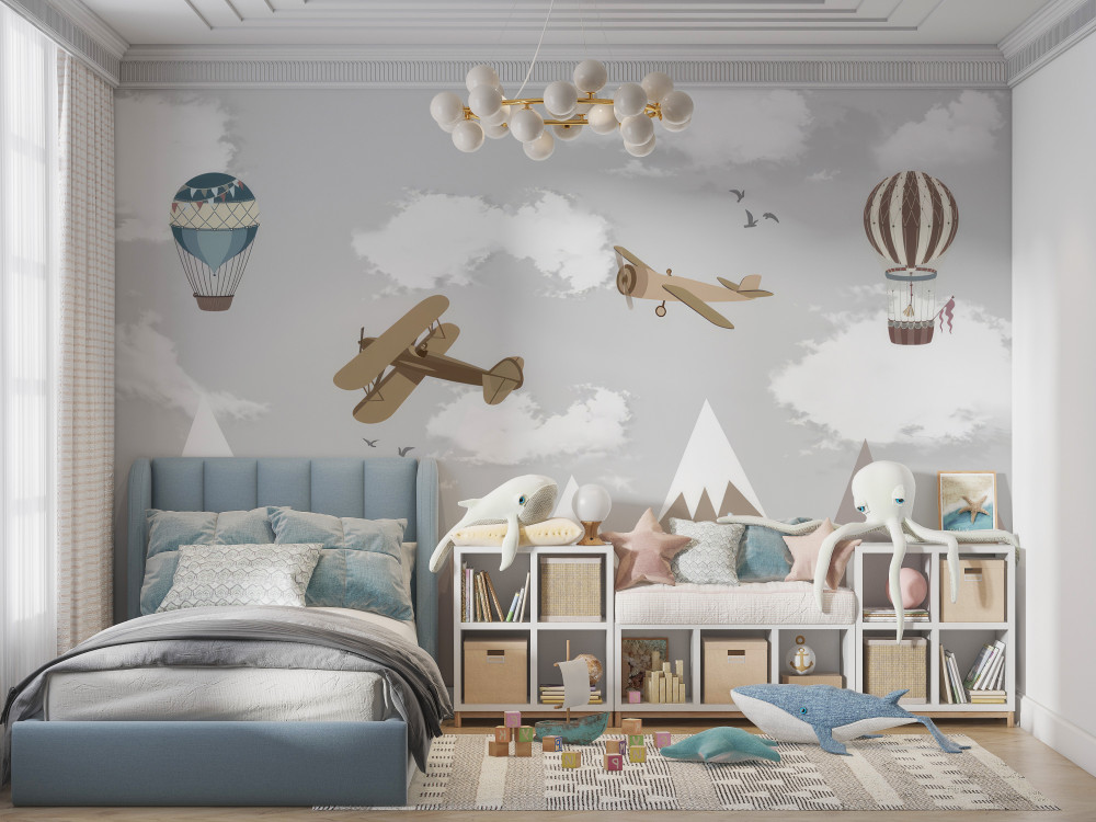 Tapeta Fototapeta latające maszyny nad górami (artykuł a90349 ) z kategorii Fototapety dla Chłopców