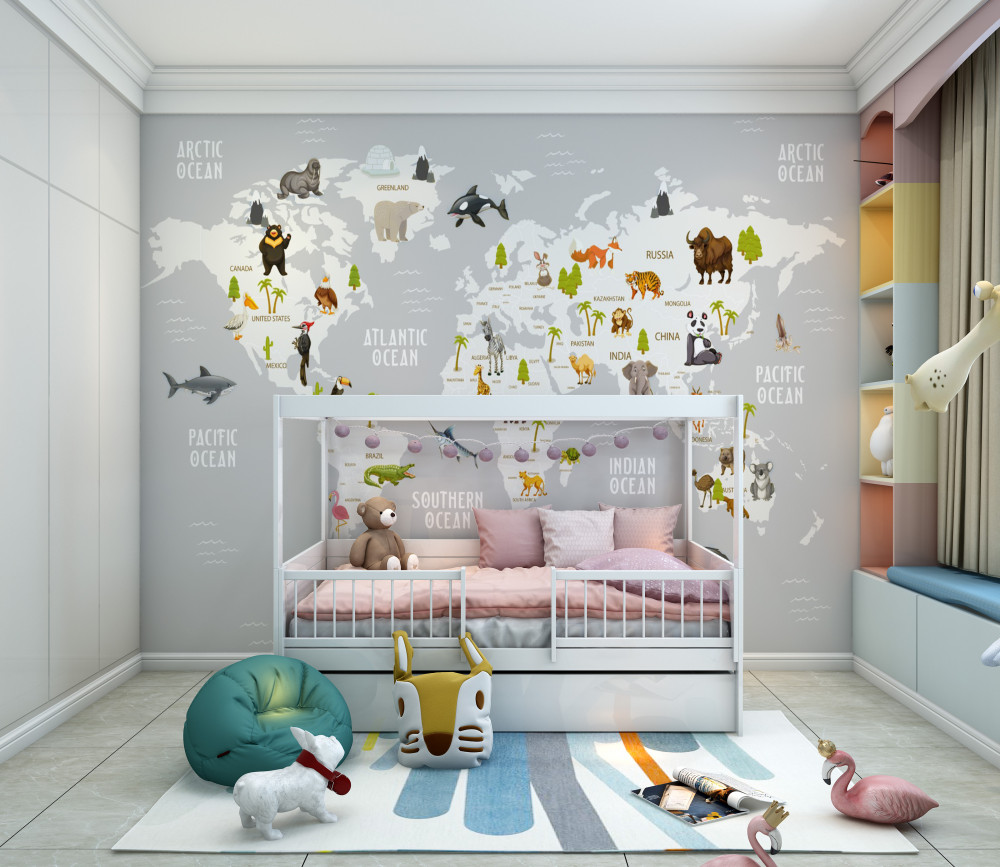 Tapeta Fototapeta mapa dzikich zwierząt (artykuł a89788 ) z kategorii Fototapety dla Chłopców