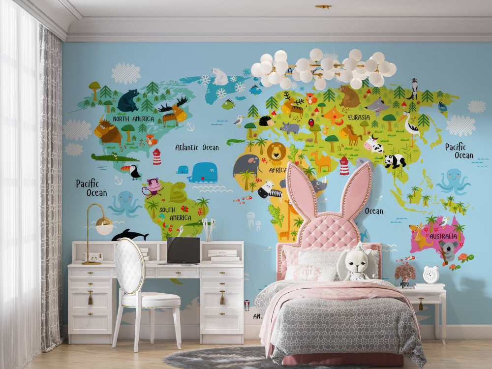 Tapeta Fototapeta narysowana mapa świata (artykuł a89991 ) z kategorii Fototapety dla Chłopców