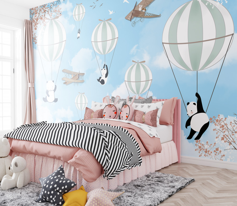 Tapeta Fototapeta pandy bawią się balonami na ogrzane powietrze (artykuł a89853 ) z kategorii Fototapety dla Chłopców