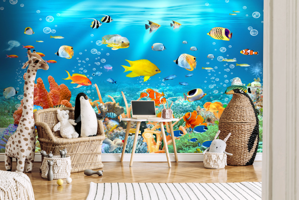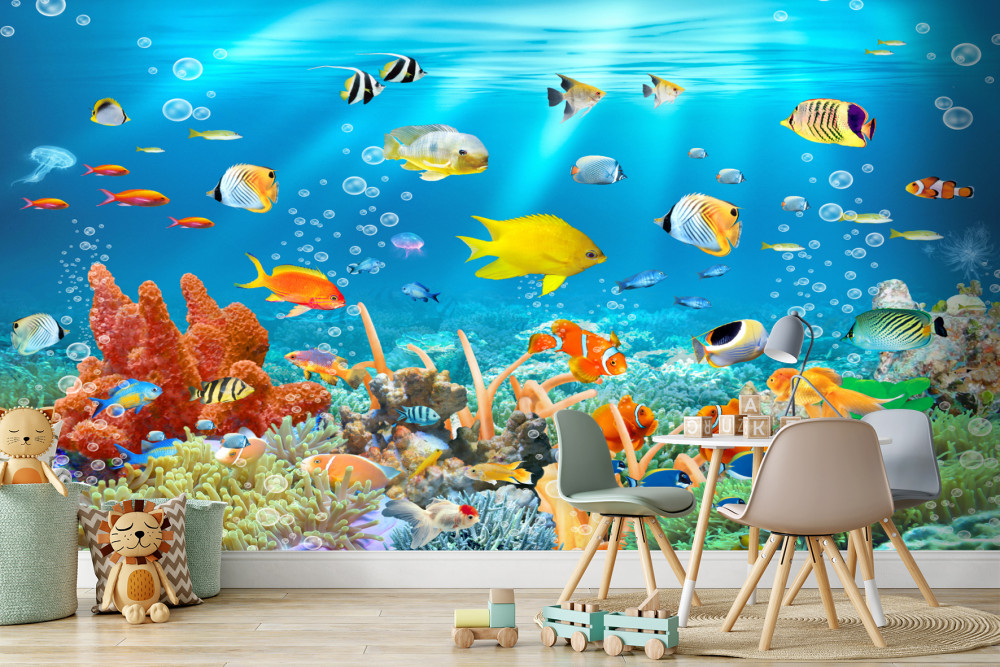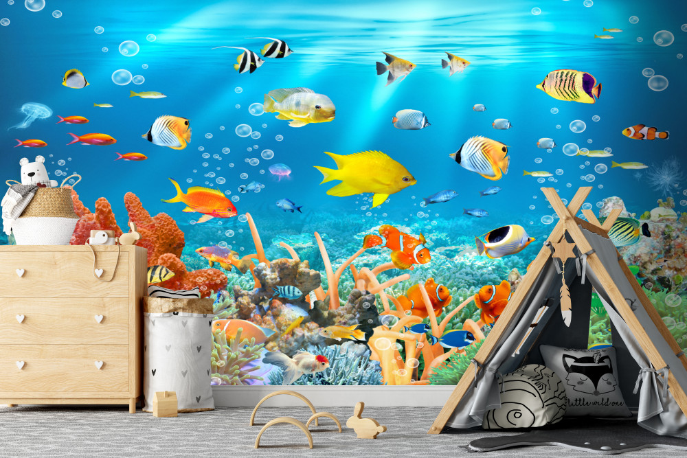 Tapeta Fototapeta różne ryby pod wodą (artykuł a90129 ) z kategorii Fototapety dla Chłopców