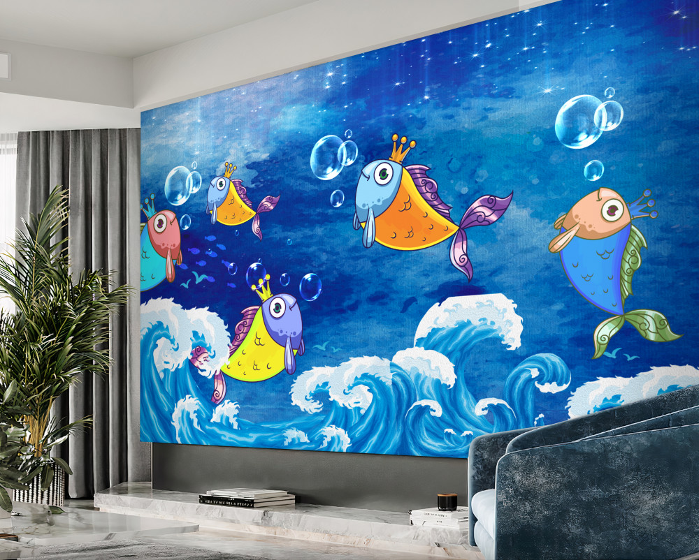Tapeta Fototapeta rysunkowa ryba z koronami (artykuł pb4469 ) z kategorii Fototapety dla Chłopców