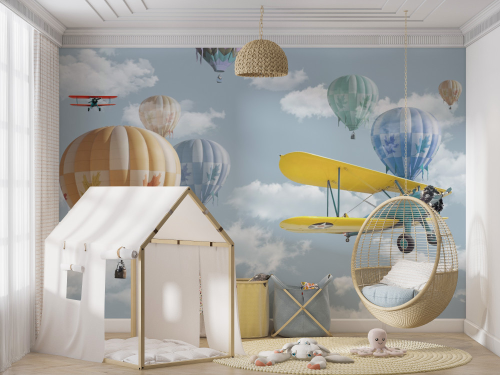 Tapeta Fototapeta samoloty i balony na niebie (artykuł a89819 ) z kategorii Fototapety dla Chłopców