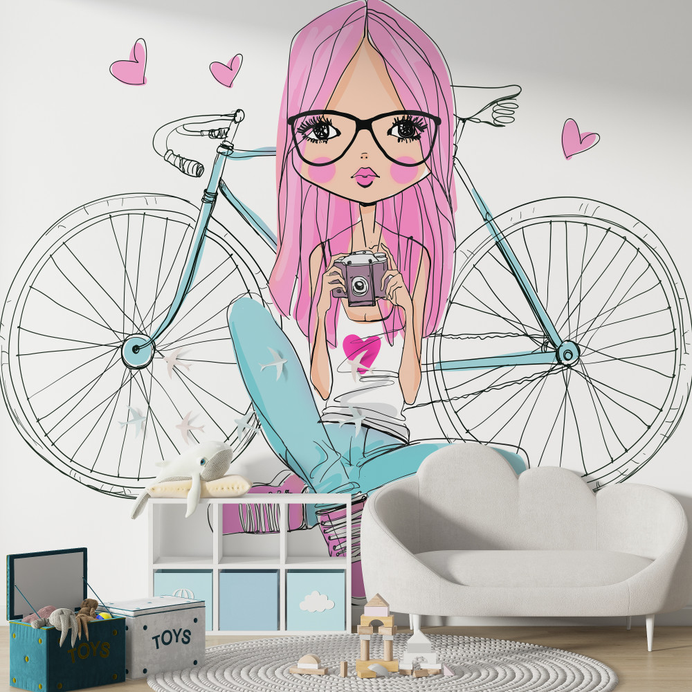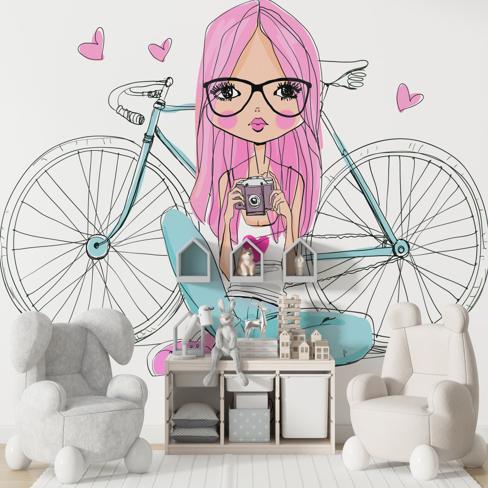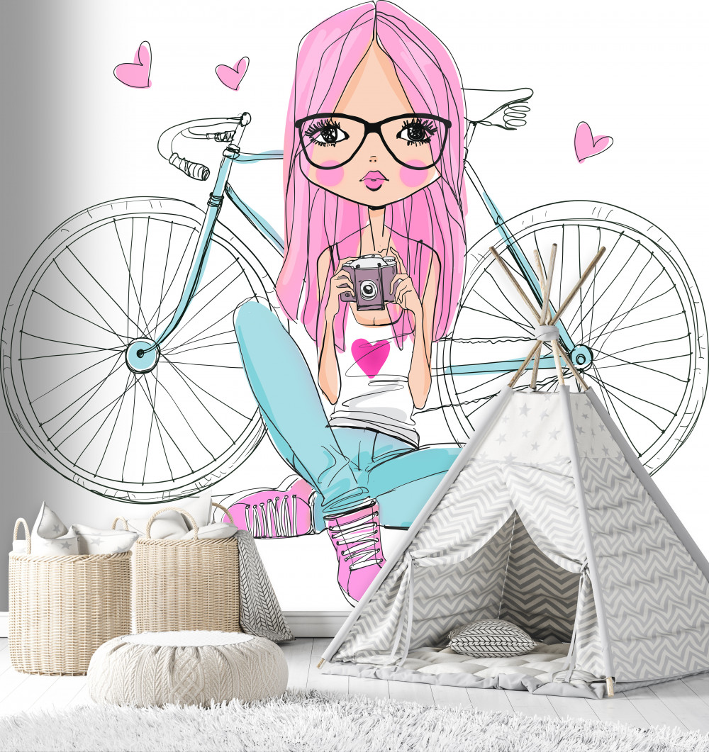 Tapeta Fototapeta stylowa dziewczyna z rowerem (artykuł a89897 ) z kategorii Fototapety dla Chłopców
