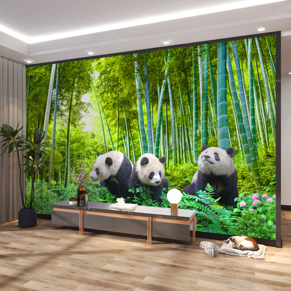 Tapeta Fototapeta trzy pandy w lesie (artykuł a90160 ) z kategorii Fototapety dla Chłopców
