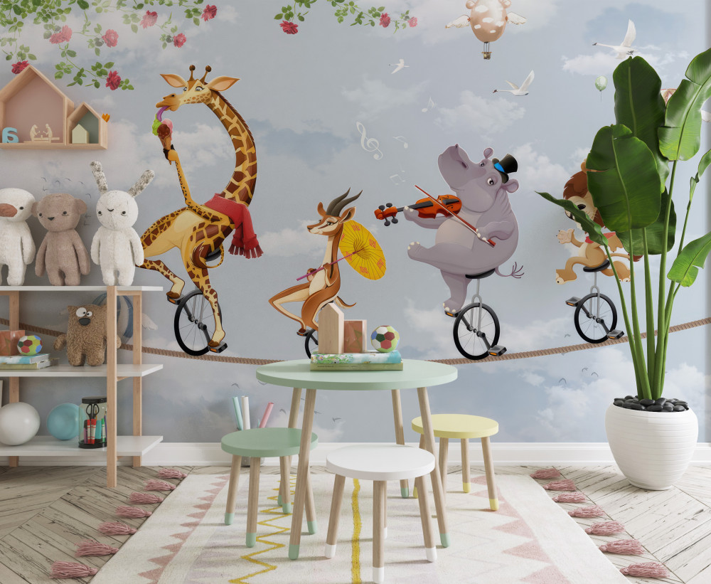 Tapeta Fototapeta zwierzęta cyrkowe na linie (artykuł a89962 ) z kategorii Fototapety dla Chłopców