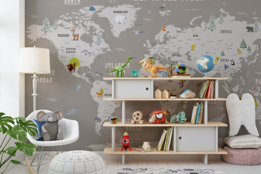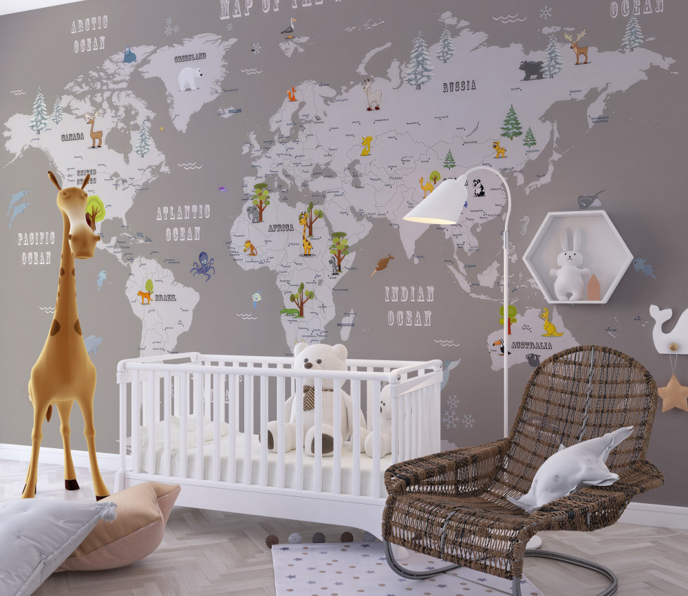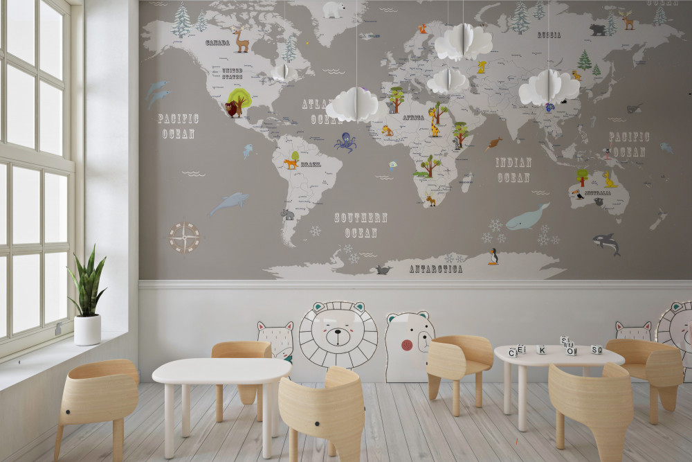 Tapeta Fototapeta zwierzęta na mapie świata (artykuł a90236 ) z kategorii Fototapety dla Chłopców