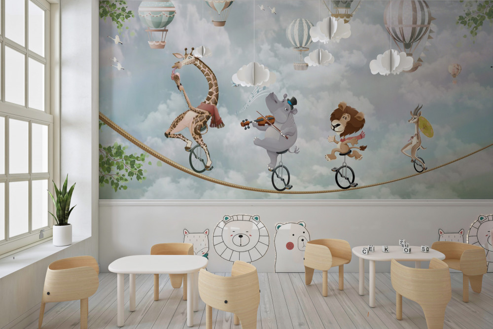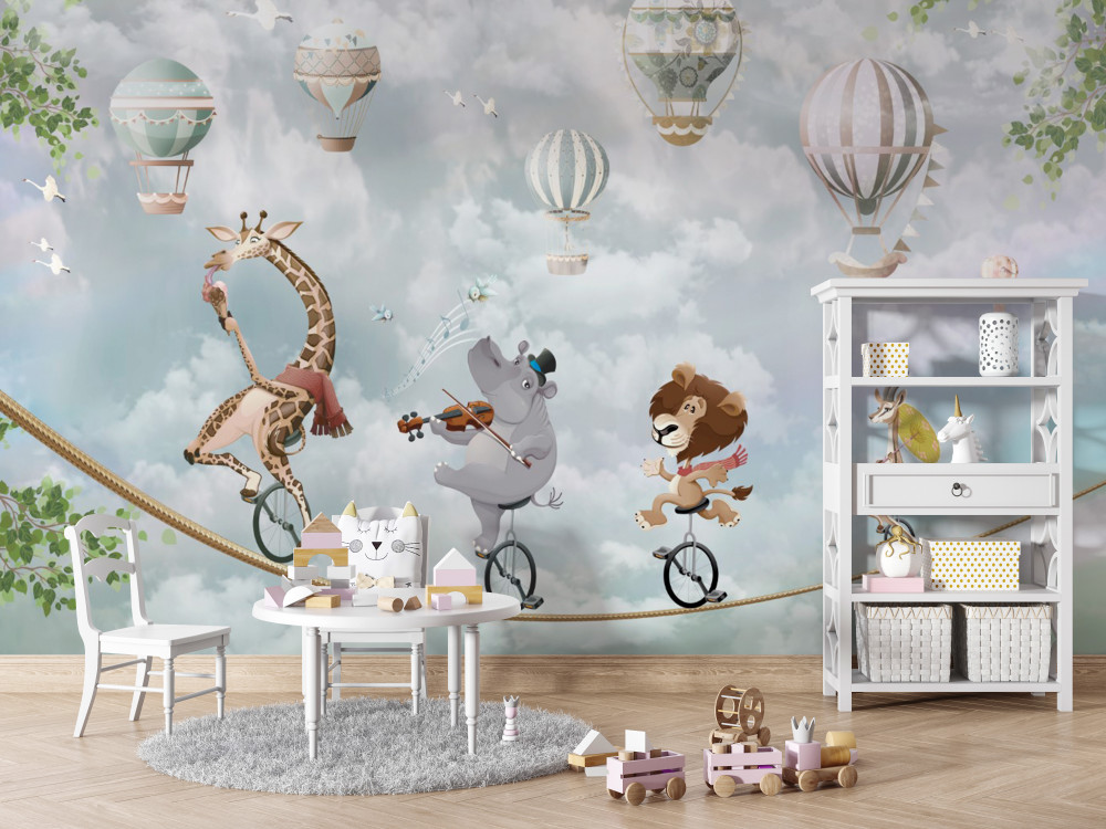 Tapeta Fototapeta zwierzęta na rowerach na linie (artykuł a89824 ) z kategorii Fototapety dla Chłopców