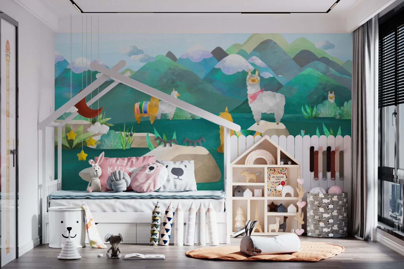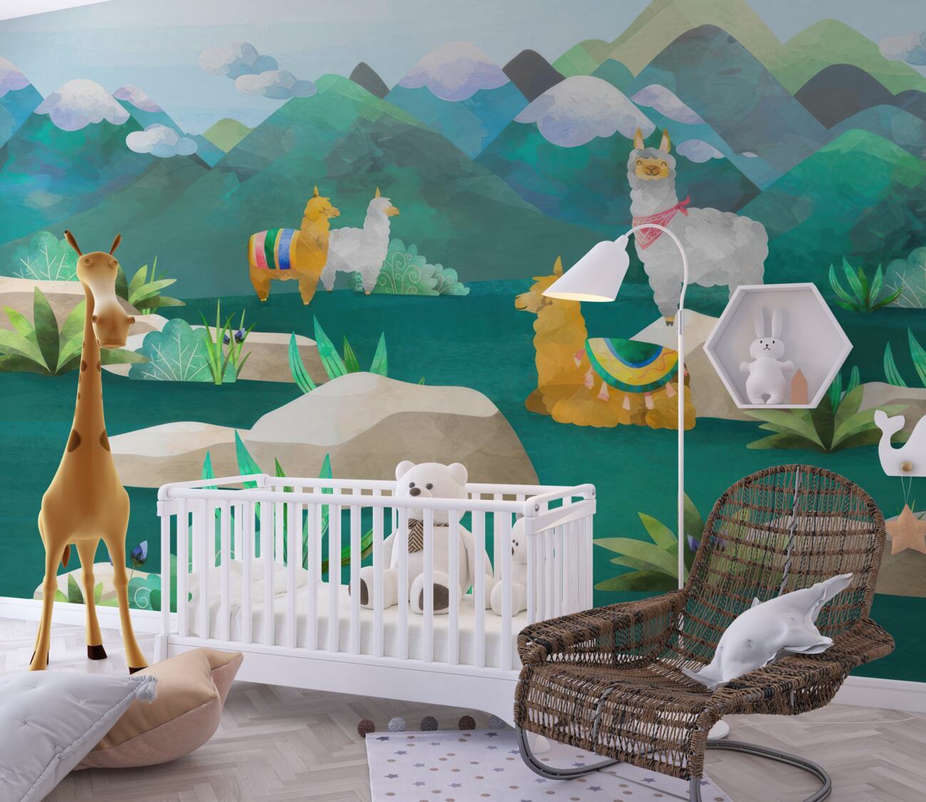 Tapeta Fototapeta Alpax spoczywa na tle gór (artykuł a100047 ) z kategorii Fototapety dla Dzieci