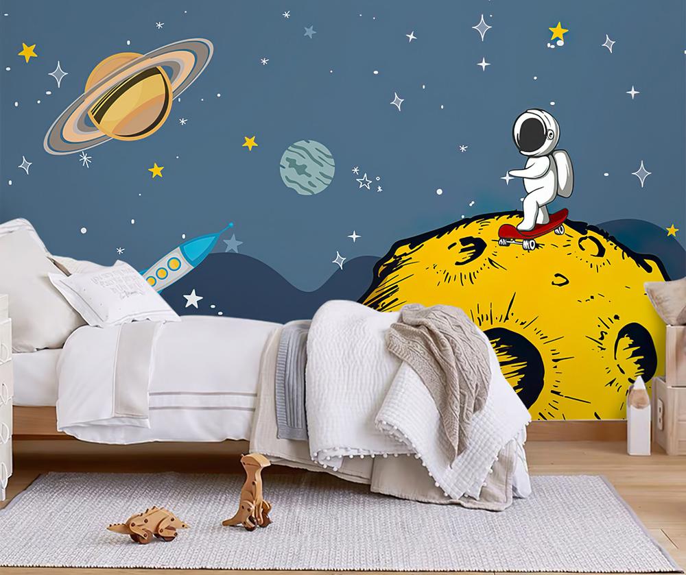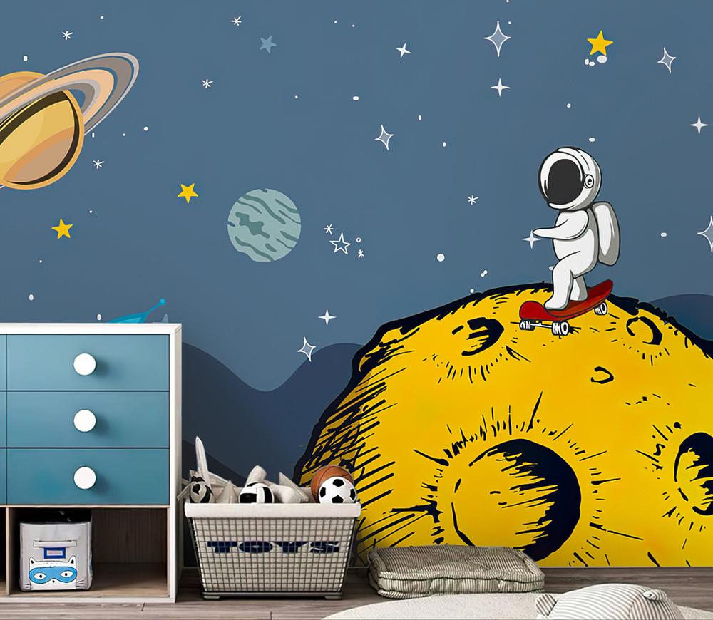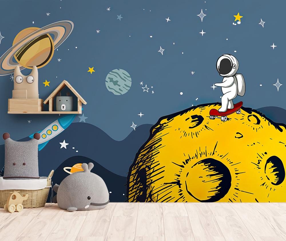 Tapeta Fototapeta astronauta skateboard żółta planeta gwiazdy (artykuł b161 ) z kategorii Fototapety dla Dzieci