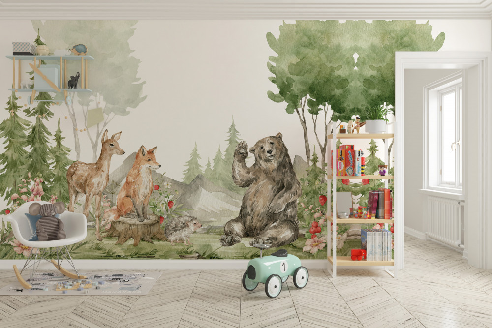 Tapeta Fototapeta bajkowa polana z leśnymi zwierzętami (artykuł a93842 ) z kategorii Fototapety dla Dzieci
