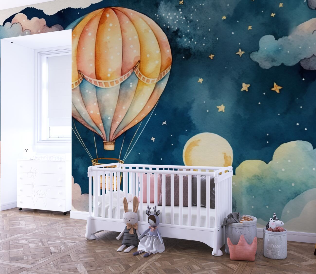 Tapeta Fototapeta Balon i gwiaździste niebo (artykuł a100098 ) z kategorii Fototapety dla Dzieci