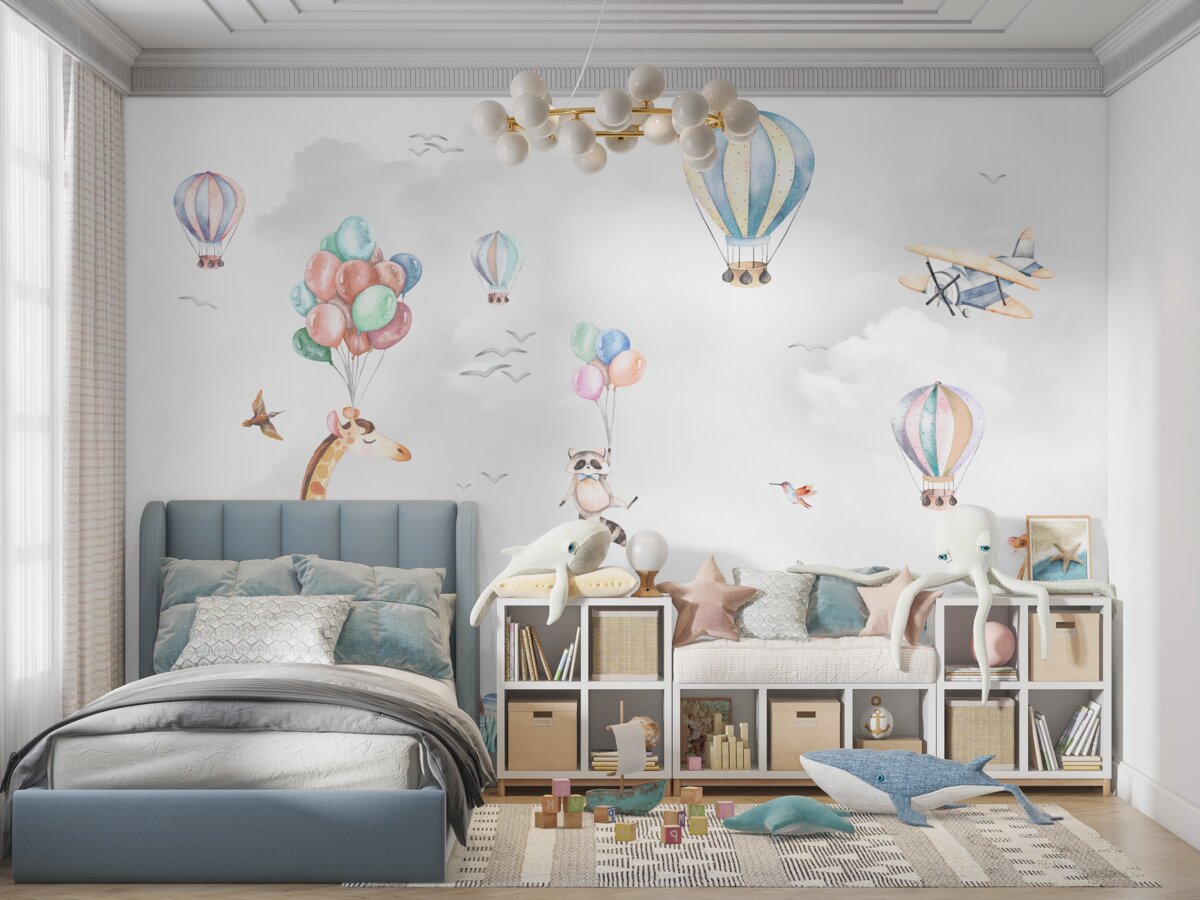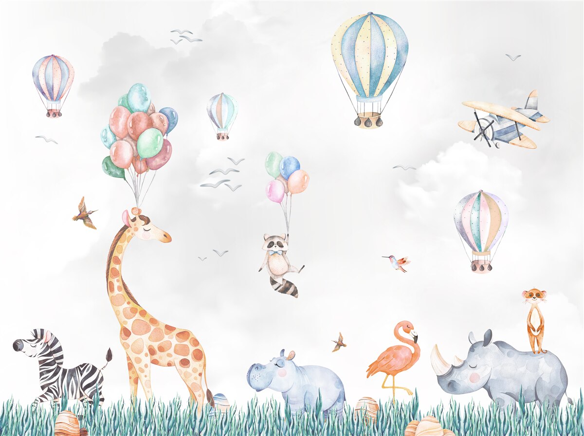Tapeta Fototapeta Balony i balony latają nad zwierzętami (artykuł a96669 ) z kategorii Fototapety dla Dzieci