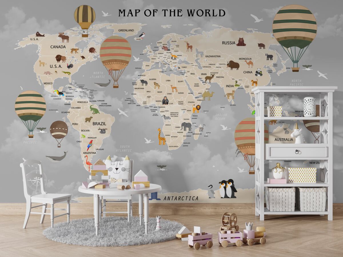 Tapeta Fototapeta Balony na mapie świata (artykuł a96714 ) z kategorii Fototapety dla Dzieci