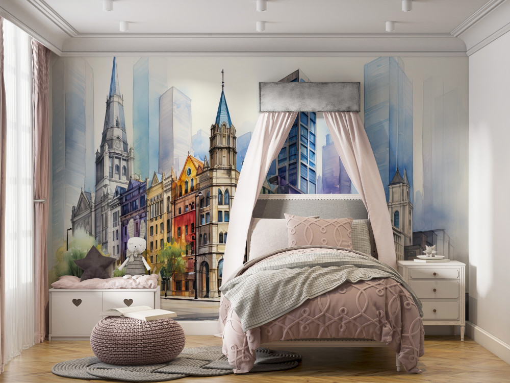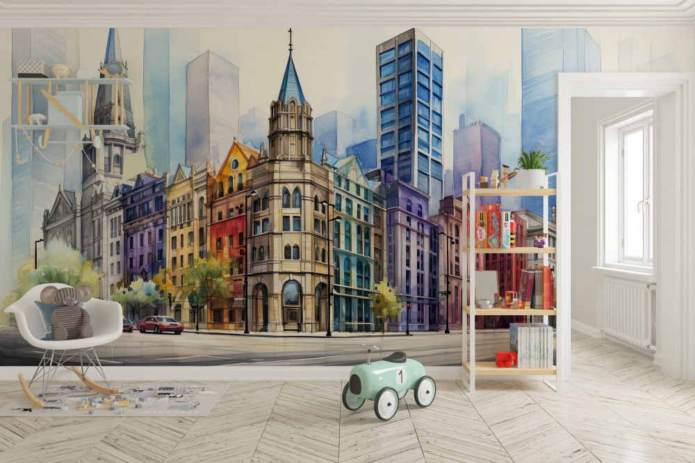 Tapeta Fototapeta bardzo ładnie narysowana ulica (artykuł a93861 ) z kategorii Fototapety dla Dzieci