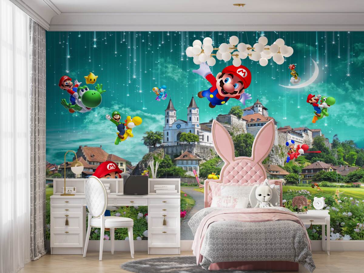 Tapeta Fototapeta Bohaterowie Mario w mieście (artykuł a96649 ) z kategorii Fototapety dla Dzieci