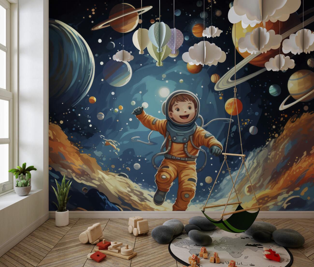 Tapeta Fototapeta Chłopiec biegnie w kosmosie (artykuł u14557 ) z kategorii Fototapety dla Dzieci