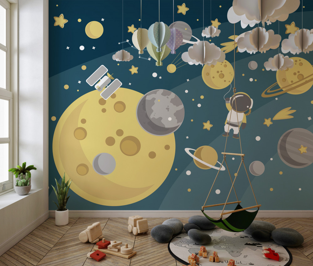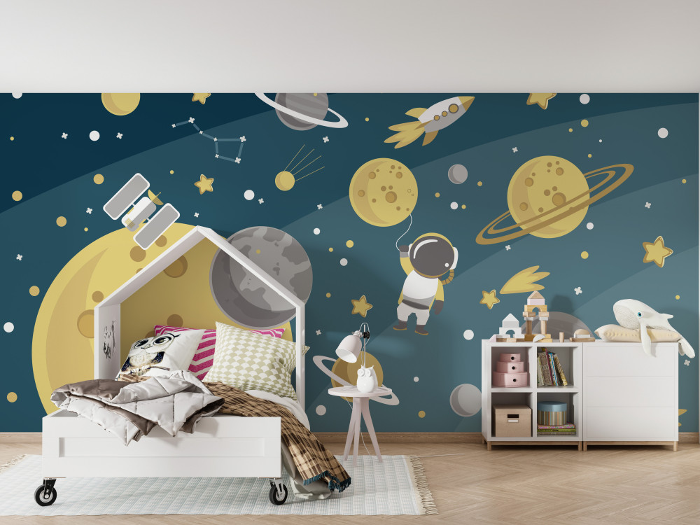 Tapeta Fototapeta człowiek w przestrzeni między różnymi planetami (artykuł a93873 ) z kategorii Fototapety dla Dzieci