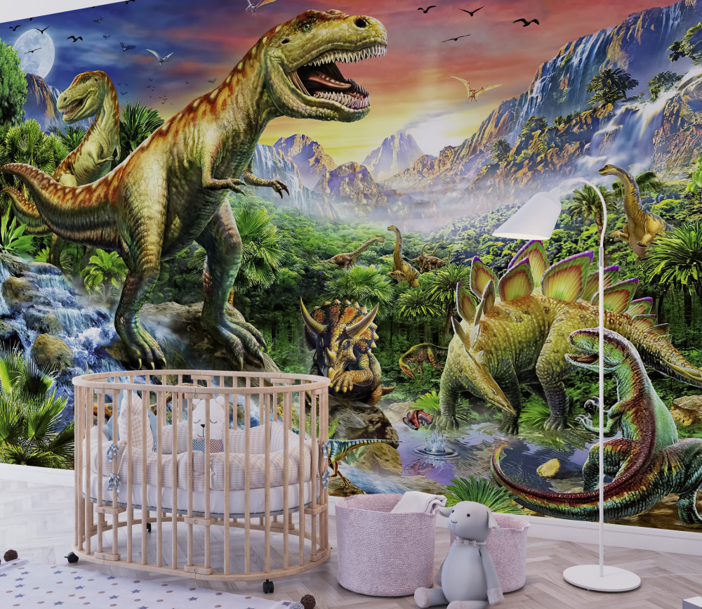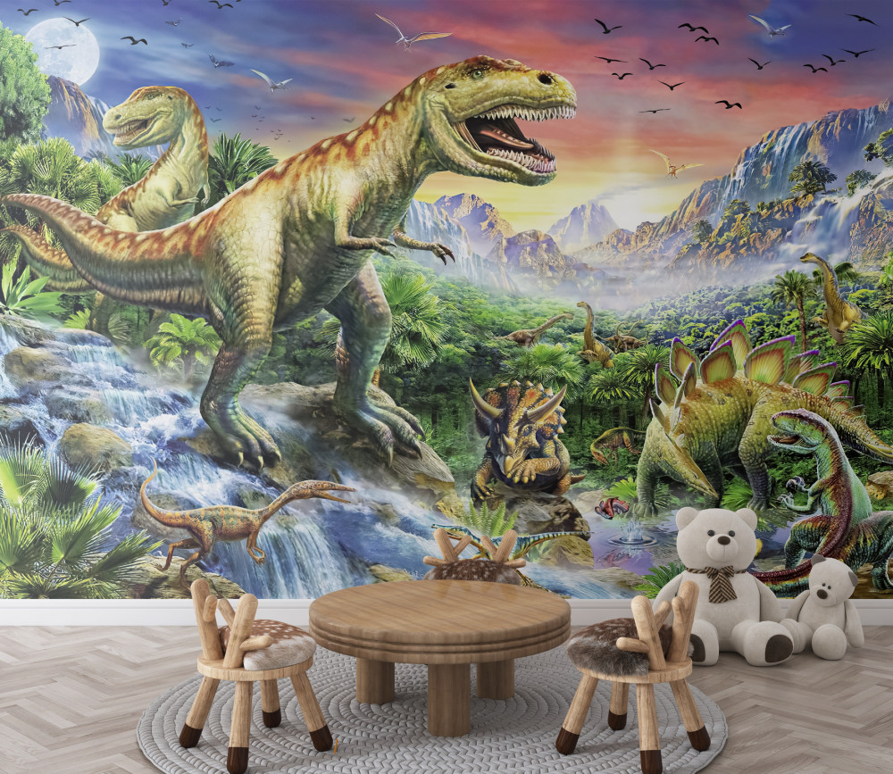 Tapeta Fototapeta dinozaury w górach (artykuł a93922 ) z kategorii Fototapety dla Dzieci