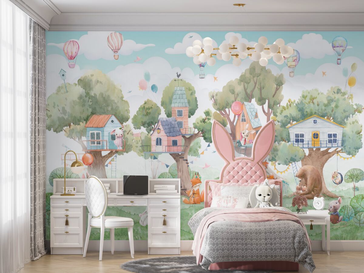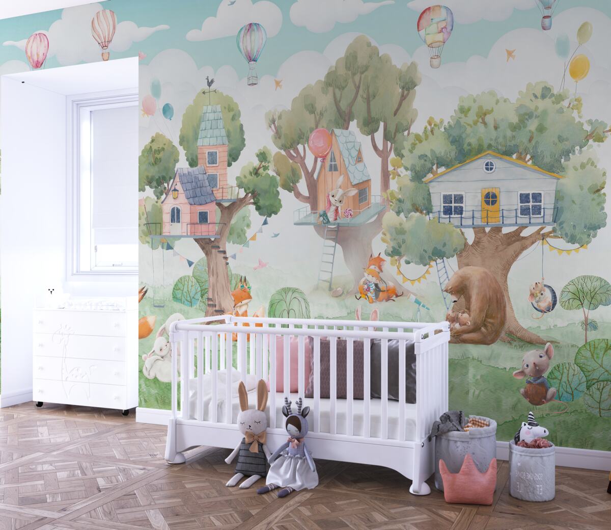 Tapeta Fototapeta Domki na drzewie młodych mieszkańców (artykuł a98130 ) z kategorii Fototapety dla Dzieci