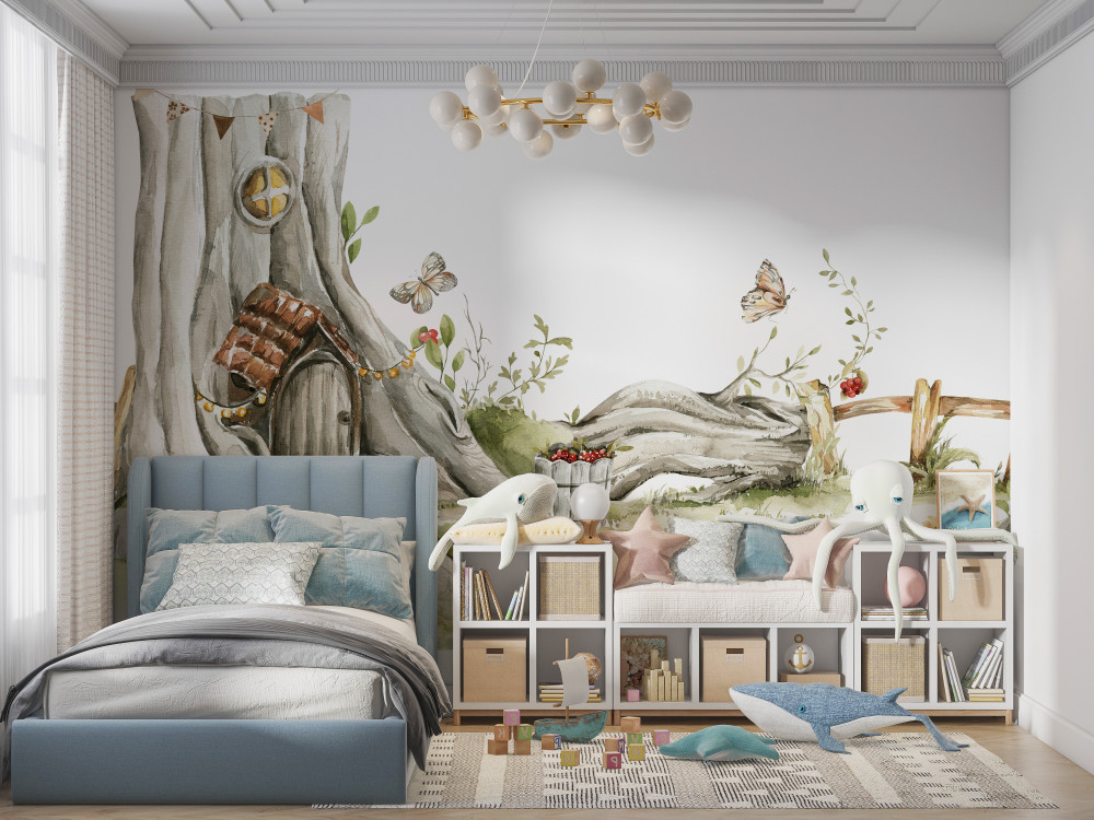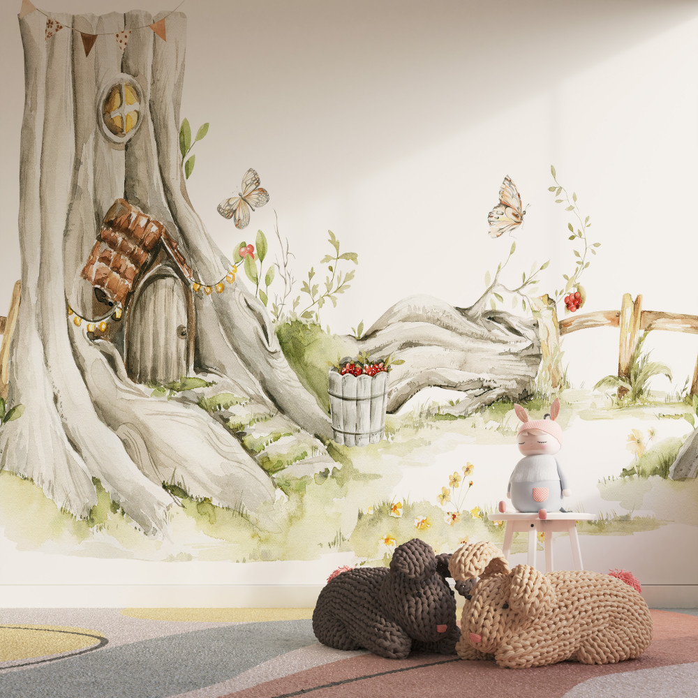 Tapeta Fototapeta drzwi w drzewie do domu mieszkańca lasu (artykuł a93891 ) z kategorii Fototapety dla Dzieci