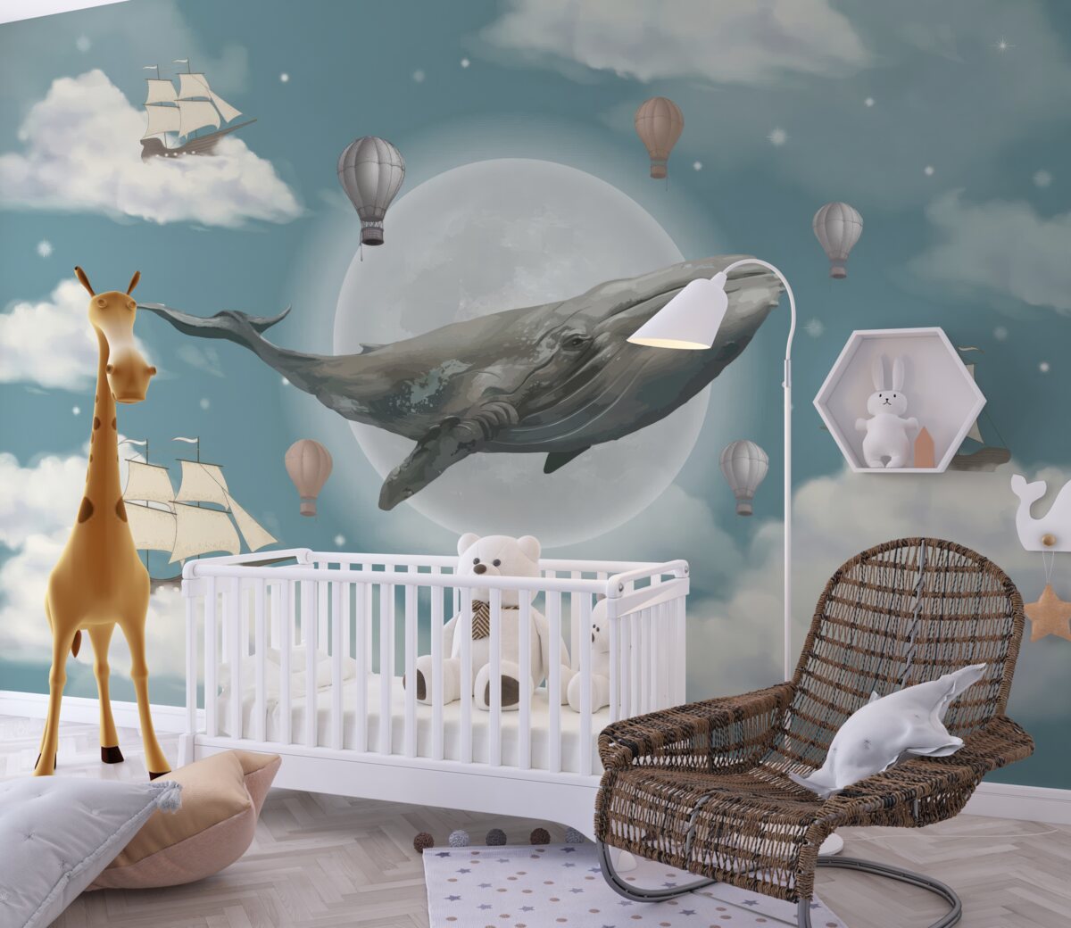 Tapeta Fototapeta Duży kaszalot na tle pełni księżyca (artykuł a97897 ) z kategorii Fototapety dla Dzieci